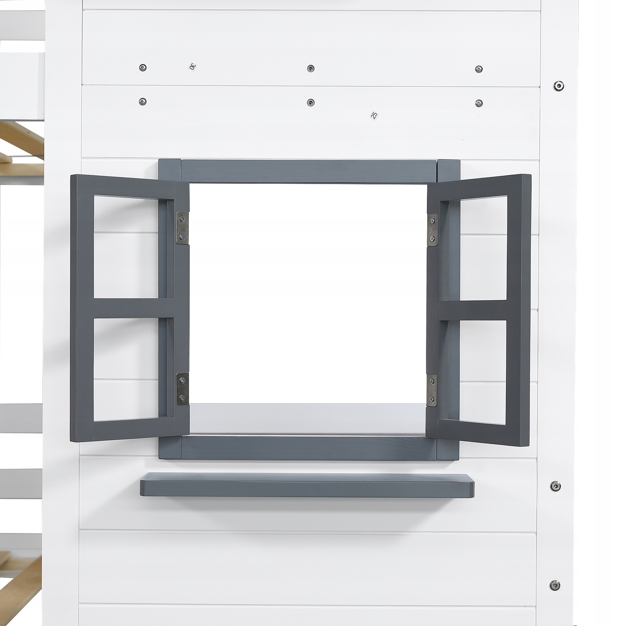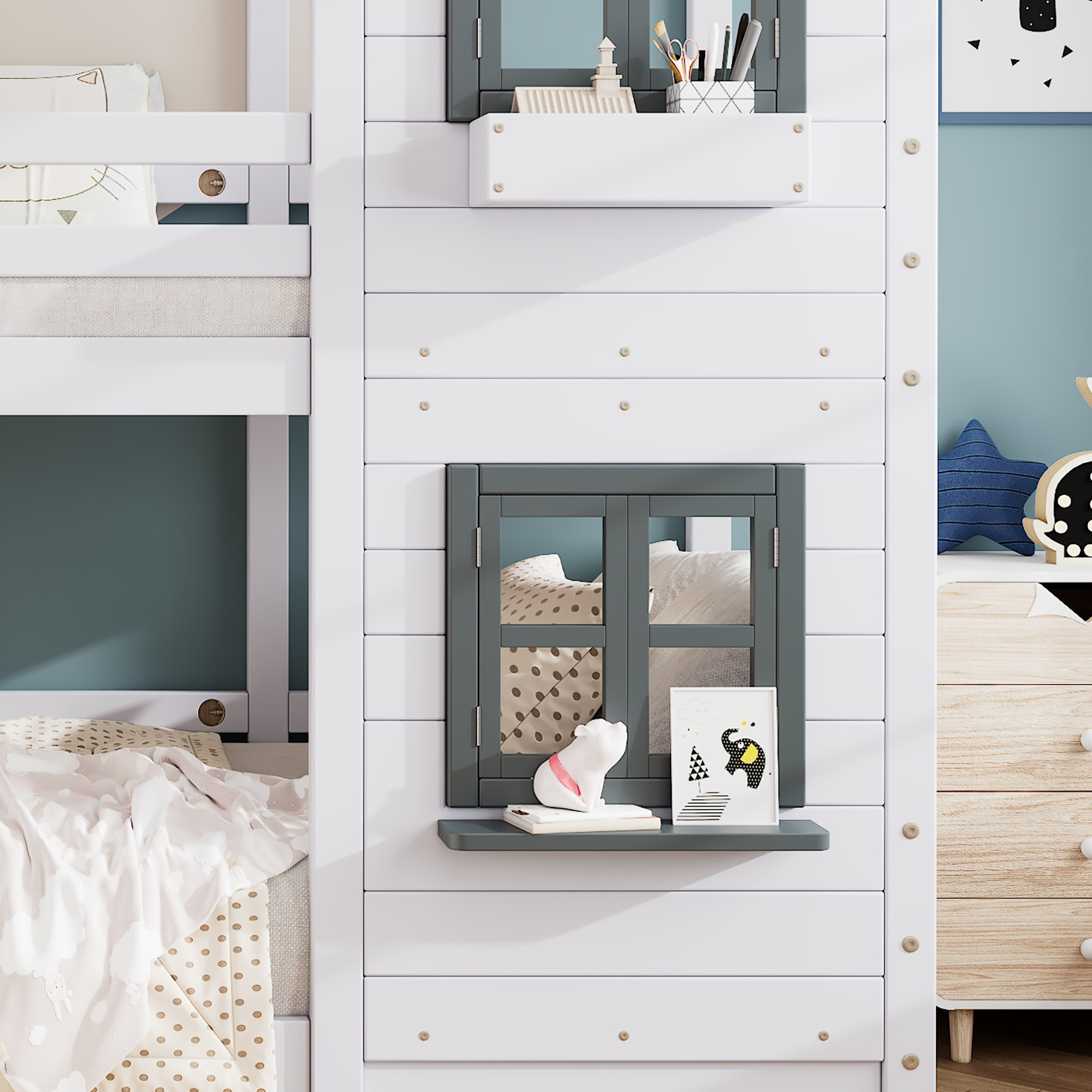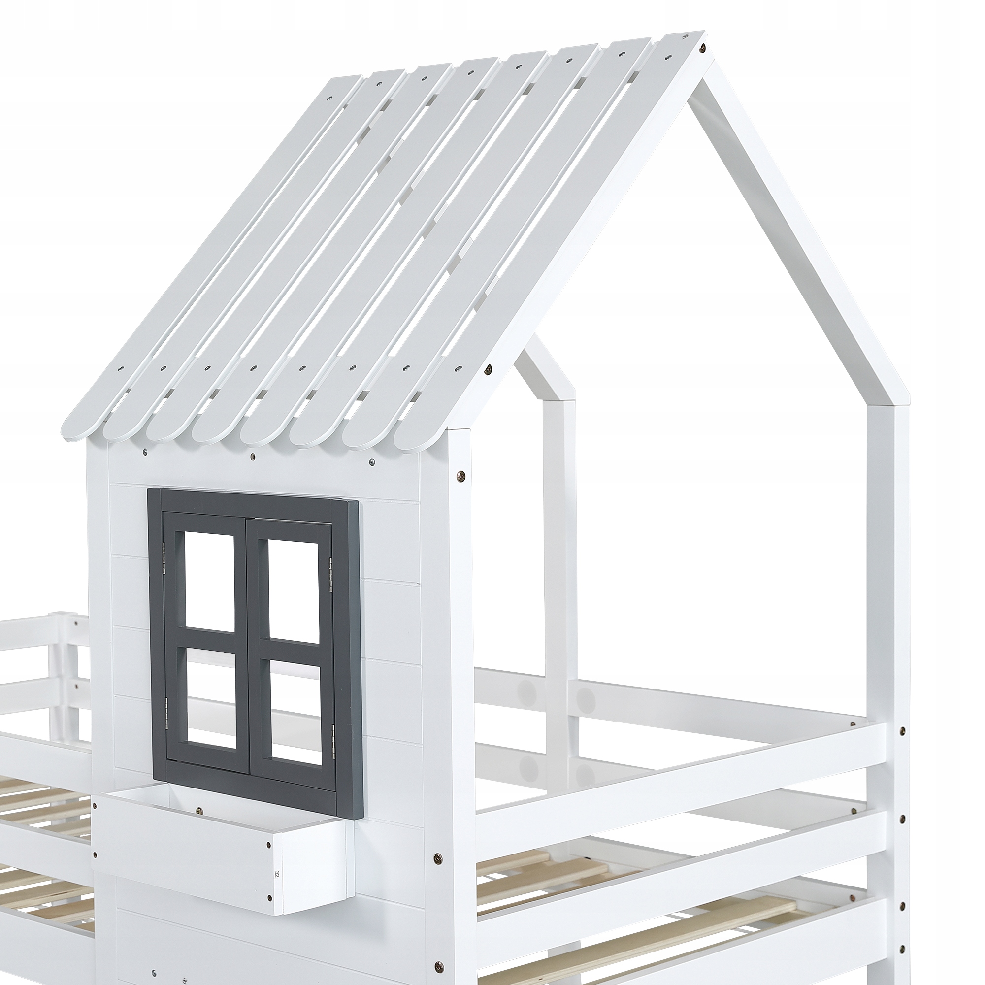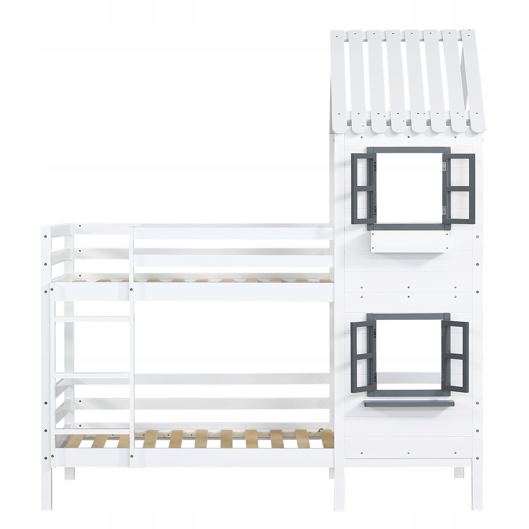Двоярусне ліжко з бар'єрами та вікнами, домашнє ліжко, біле 90x200см