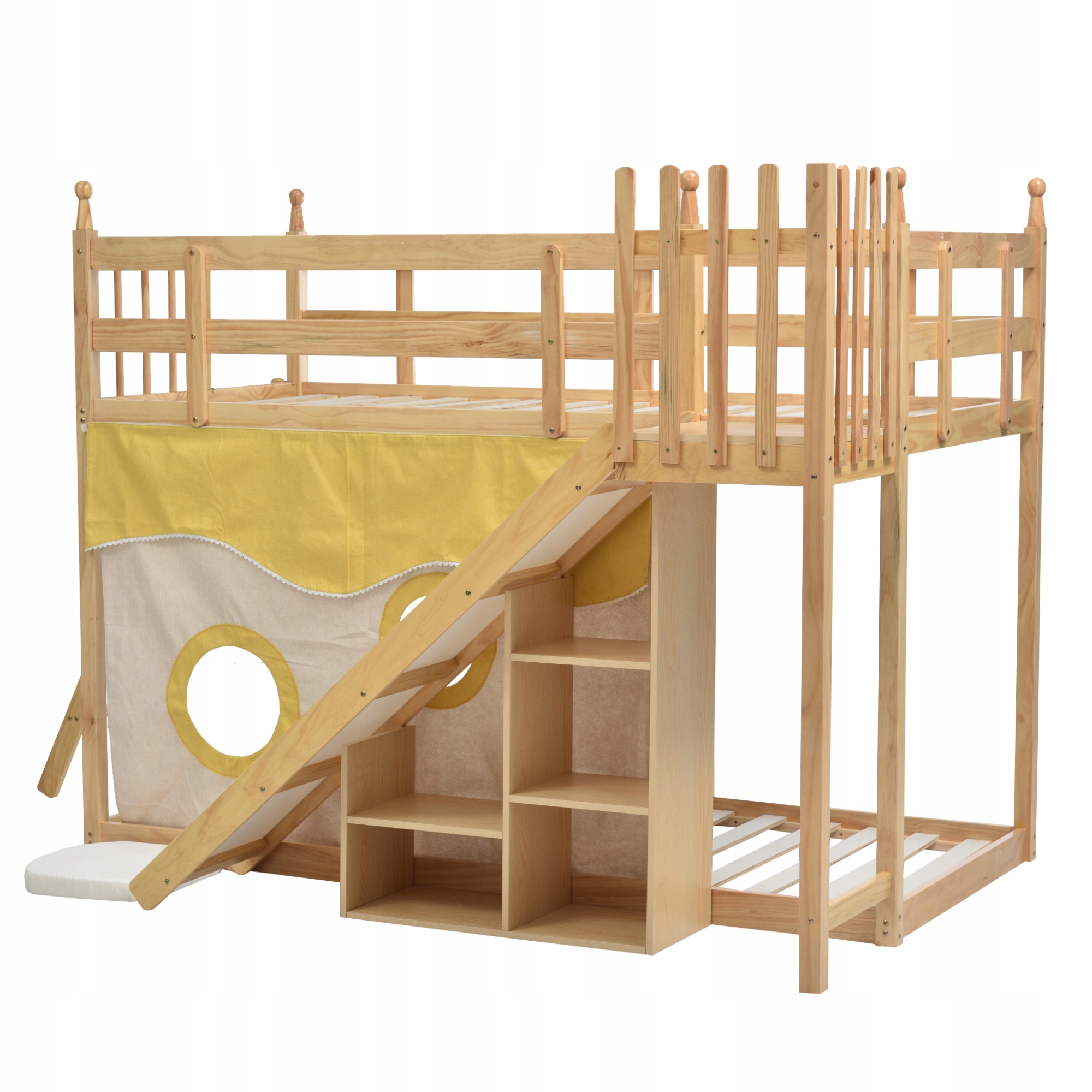 Двоярусне ліжко з шторкою, гіркою та полицею 90х200см