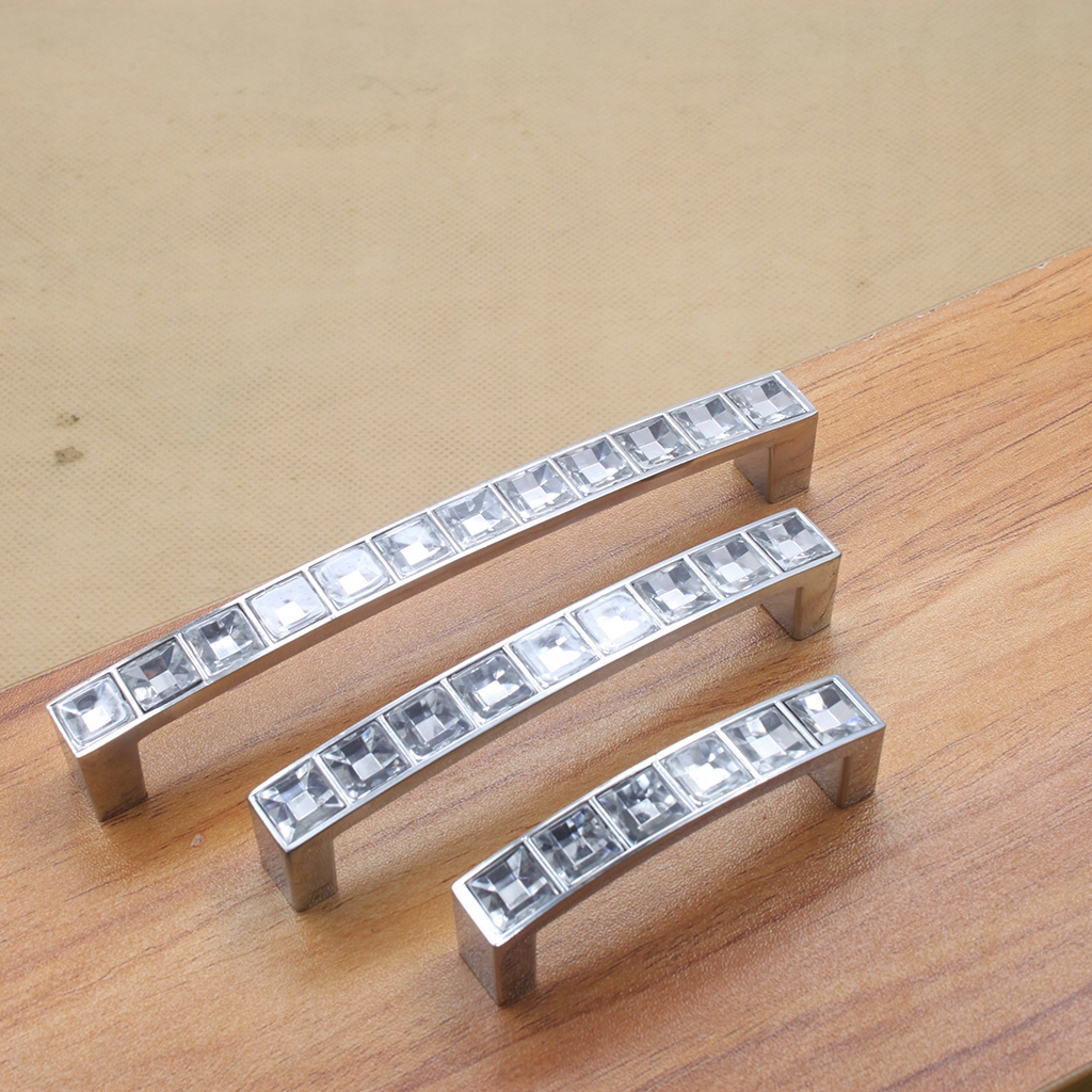 Dwa kryształowe uchwyty meblowe do szafki z szufladami Szafa 64 mm z otworami w kolorze srebrnym