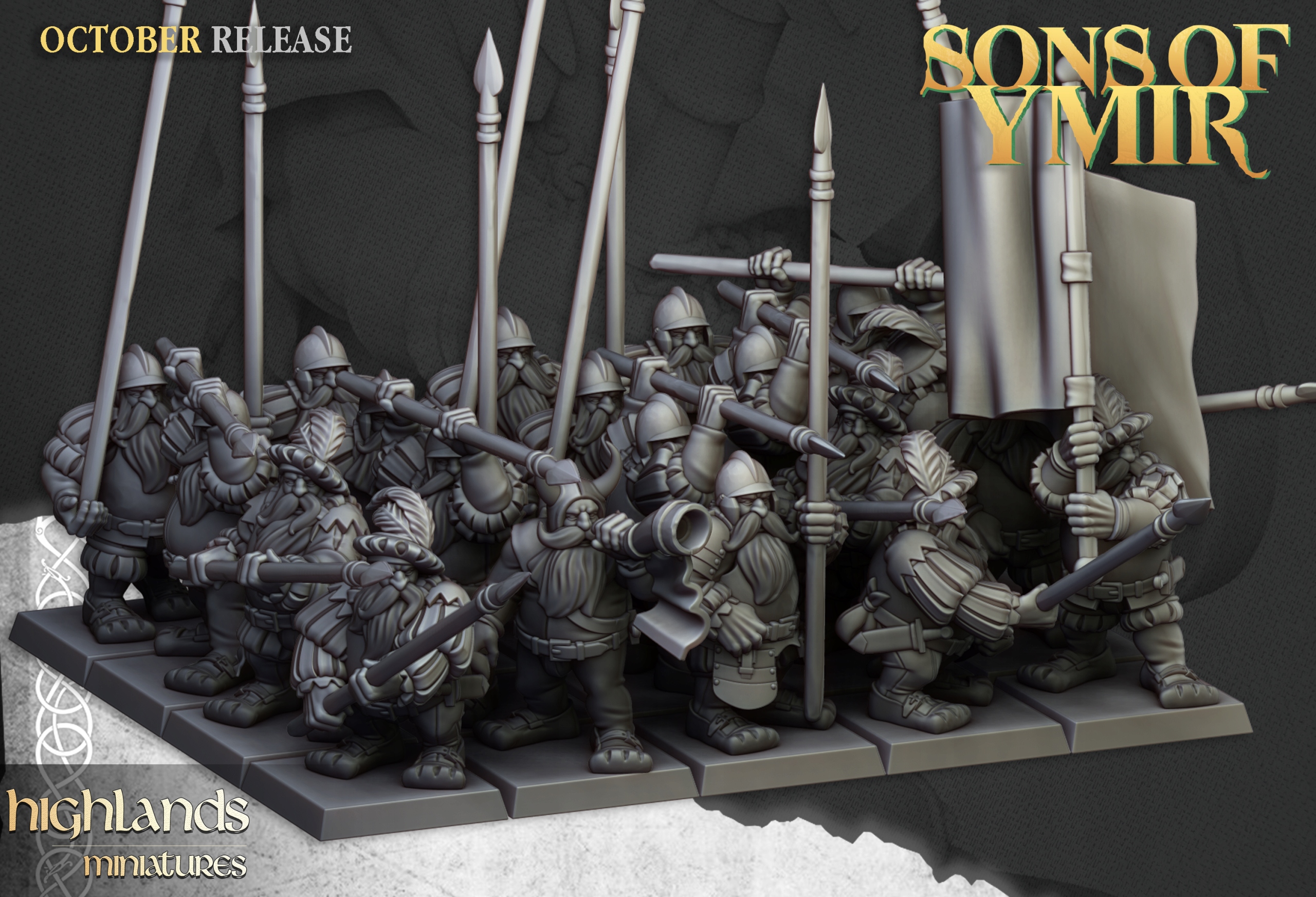Dwarf Pikemen CMD x3 Highlands Miniatures 32 мм
