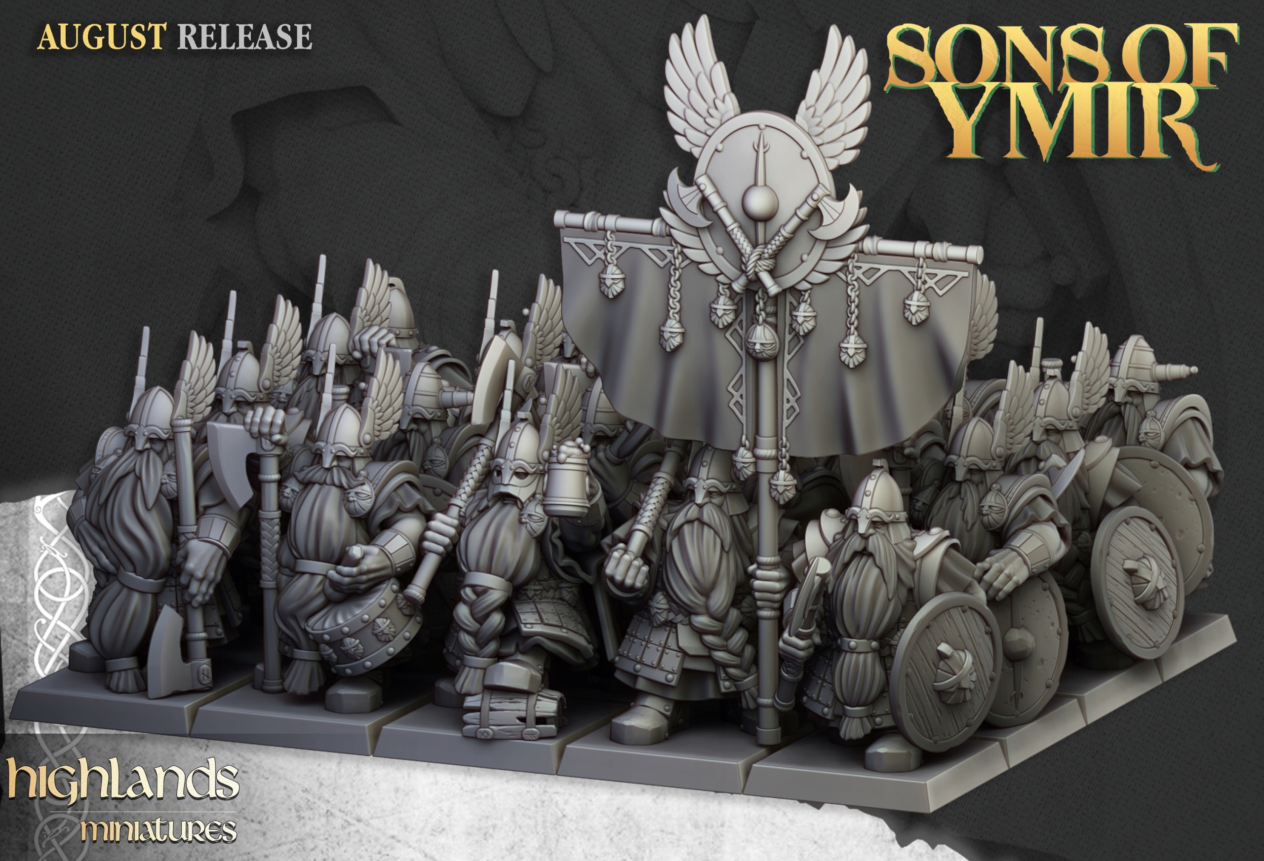 Предметом пропозиції є набір із трьох моделей CMD Dwarfs Veterans із Highlands Miniatures, надрукованих на 3D-принтері за технологією SLA.