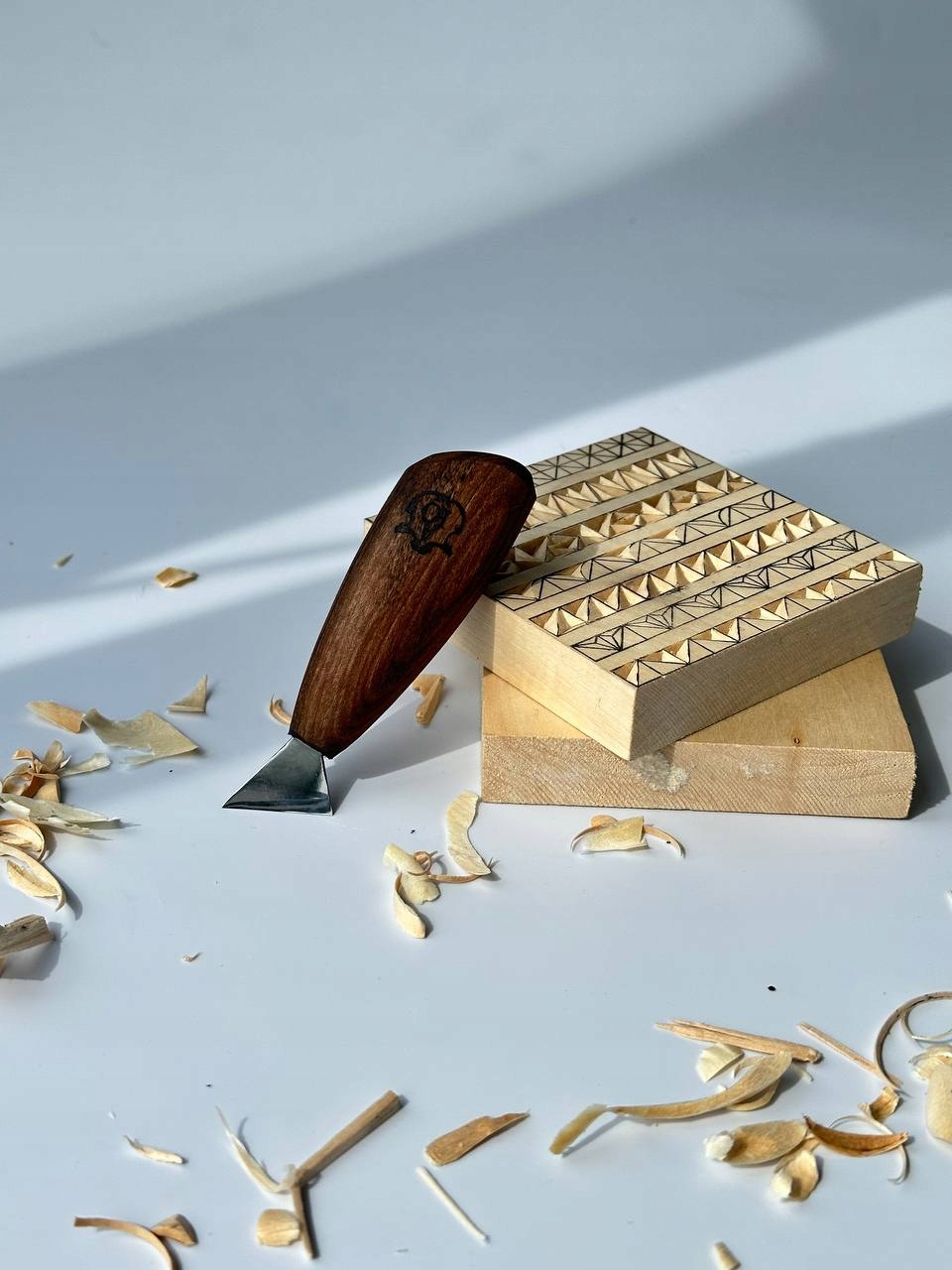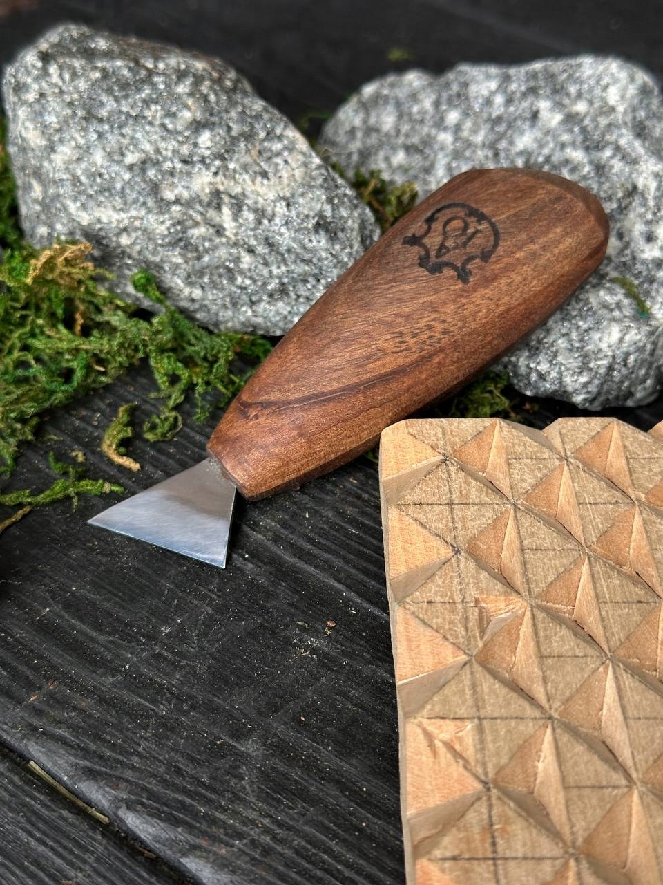 Скульптурний ніж Stryi 30 мм - Ластівка хвоста, різьблення чіпів, вуглецева сталь
