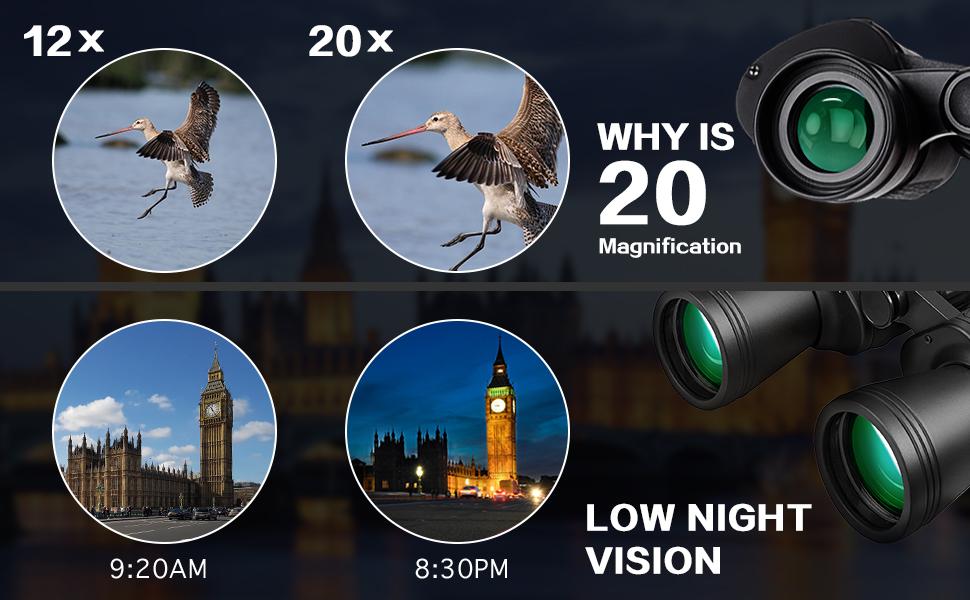 bak4, 18,5 мм товщиною з високою проникністю світла, ефективно уникає втрати світла та чорних країв. Ви можете отримати чіткіші та яскравіші зображення. Інші біноклі, що використовують призми BK7, мають низьку проникність світла, темні побічні ефекти та погані зображення.