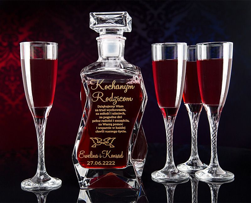 Чудовий скляний графин ручної форми, який робить кожен унікальним та унікальним. Збоку має спеціальний ламаний малюнок, який підкреслює, що графин виглядає дуже дорого. Він чудово виглядає завдяки своїй інноваційній формі, що забезпечує незабутнє естетичне та візуальне враження. Продавець повідомляє, що графини виготовляються вручну на склозаводі і іноді можуть містити бульбашки повітря всередині скла та дрібні подряпини на поверхні, що є результатом виробничого процесу. Можу зробити для вас - ПОДАРУНОК НА БУДЬ-ЯКУ НАХОДУ (весілля, прийом, день народження, вісімнадцятиріччя, іменини, ювілей, річниця весілля, день батька, день дідуся тощо).