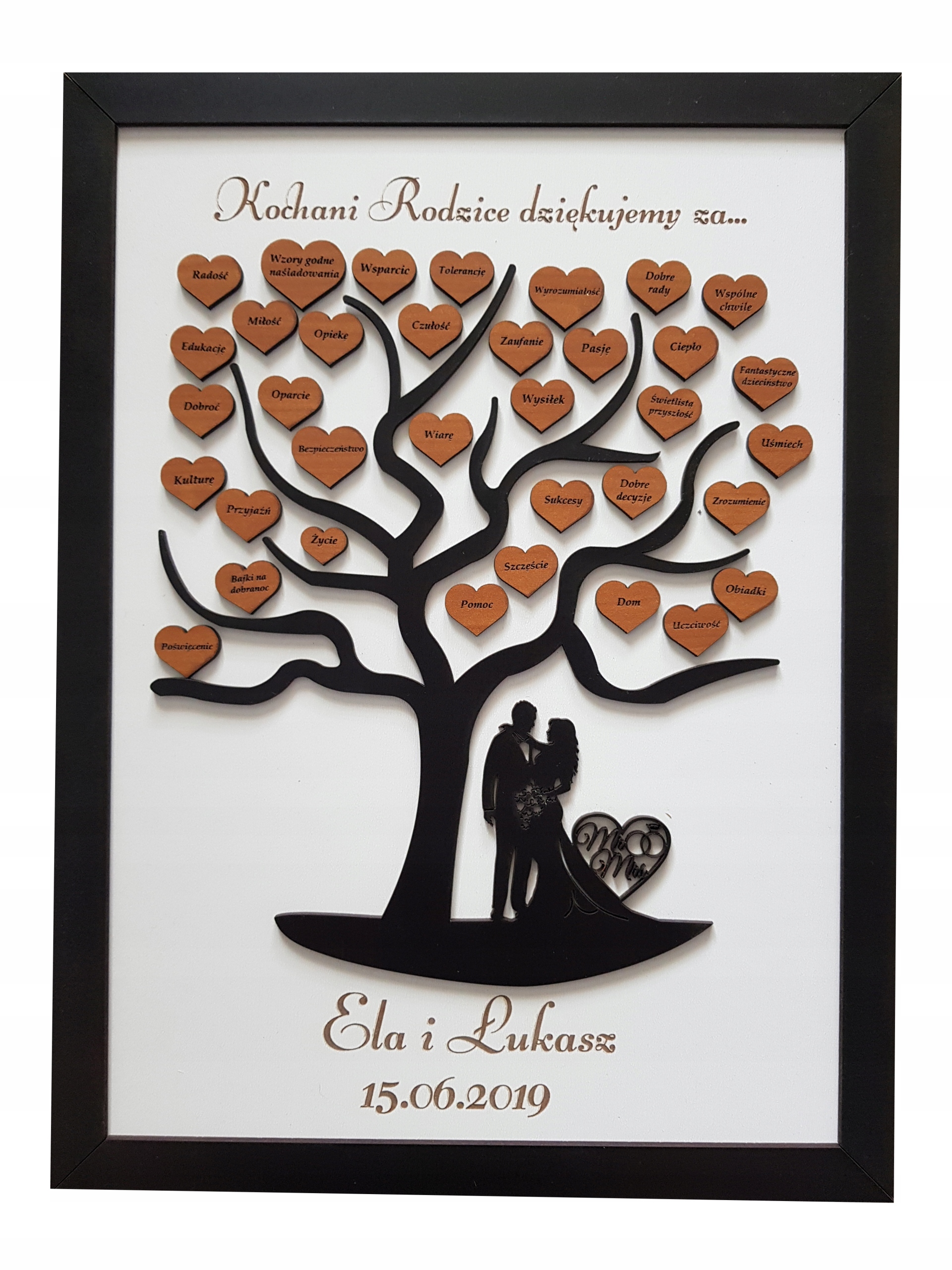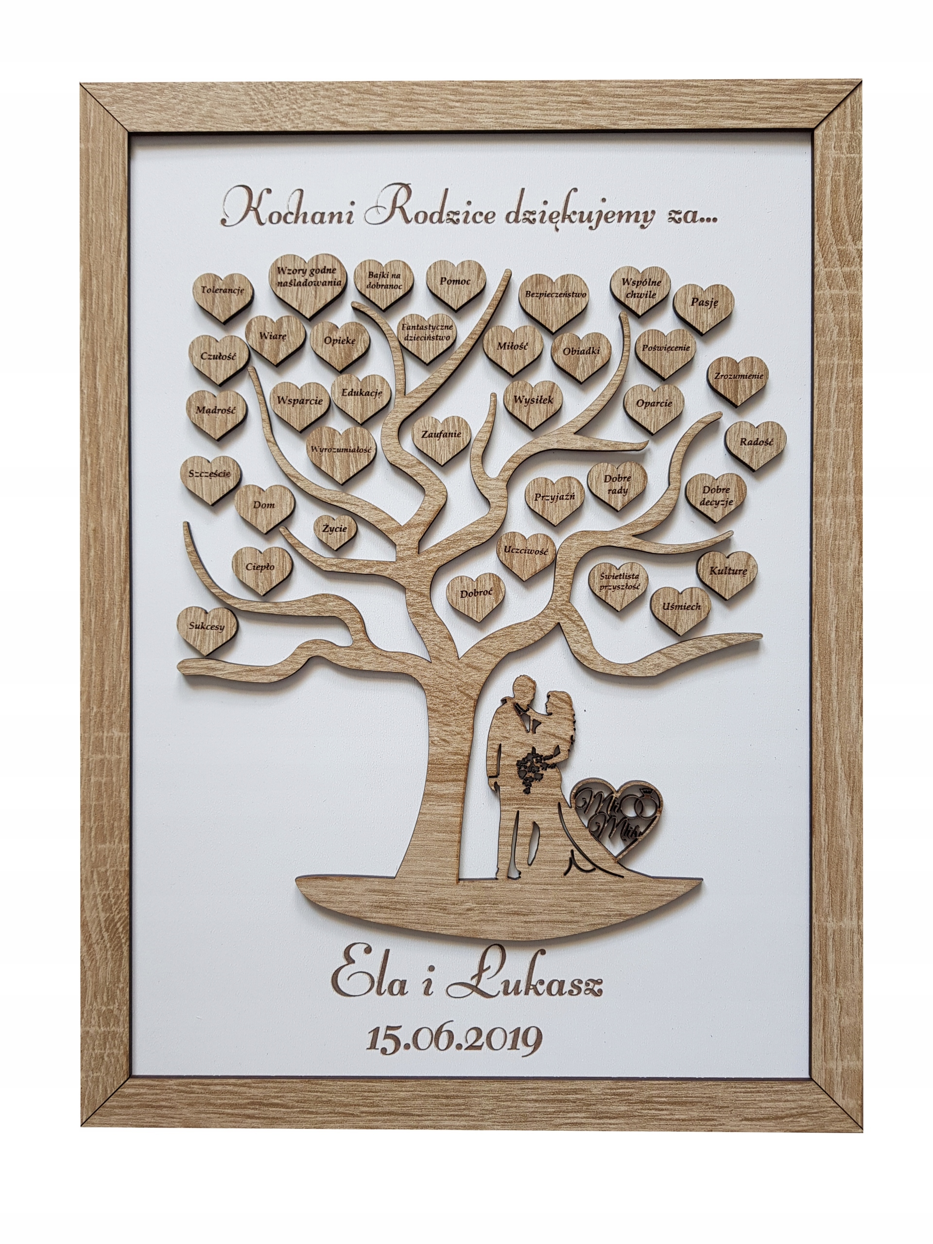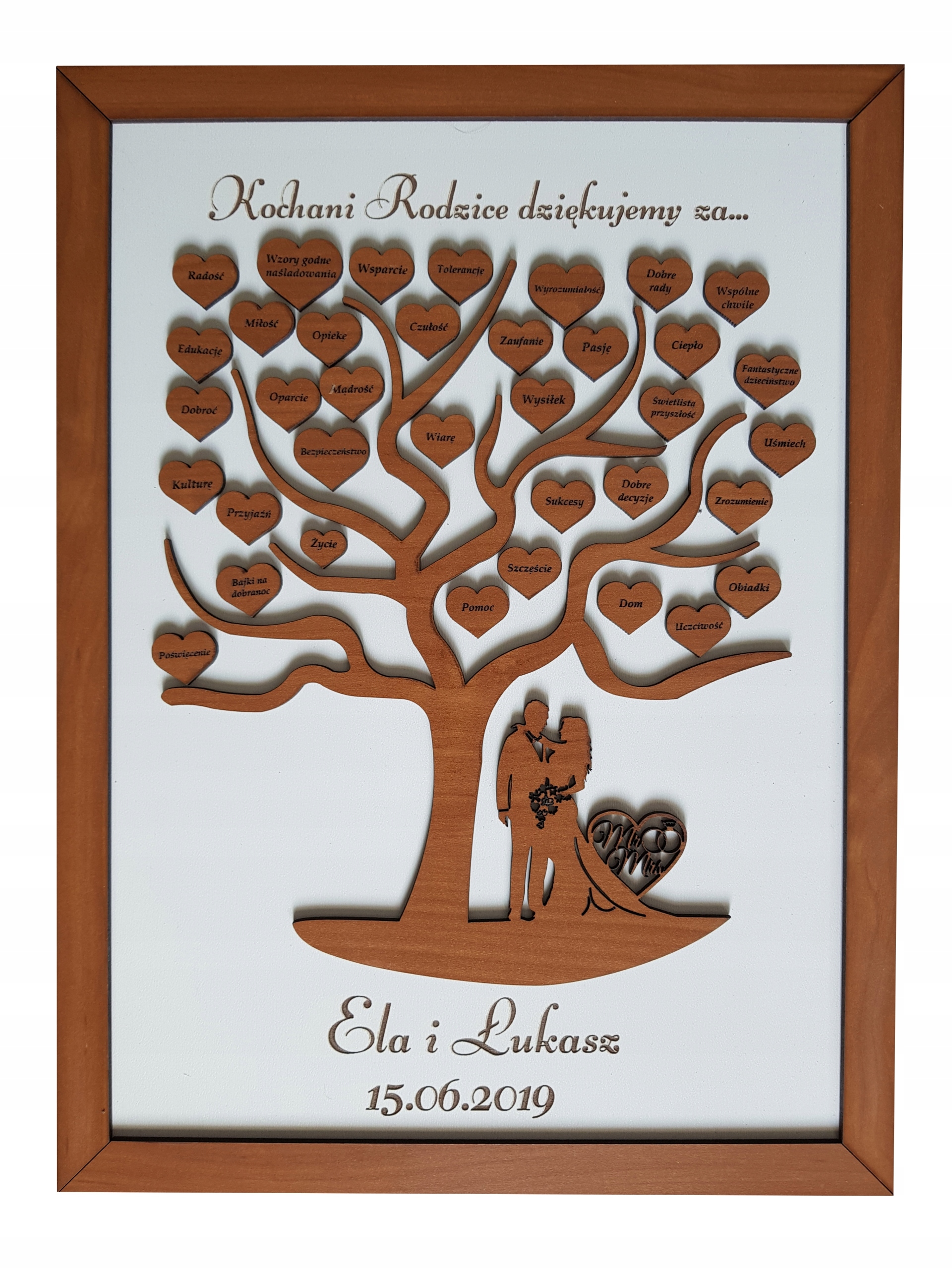 2. Імена нареченого та нареченої та дата весілля (наприклад, Ела та Лукаш, 15.06.2019)