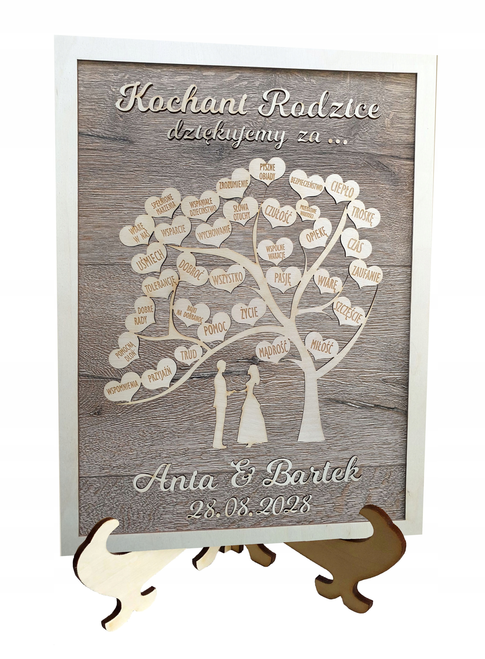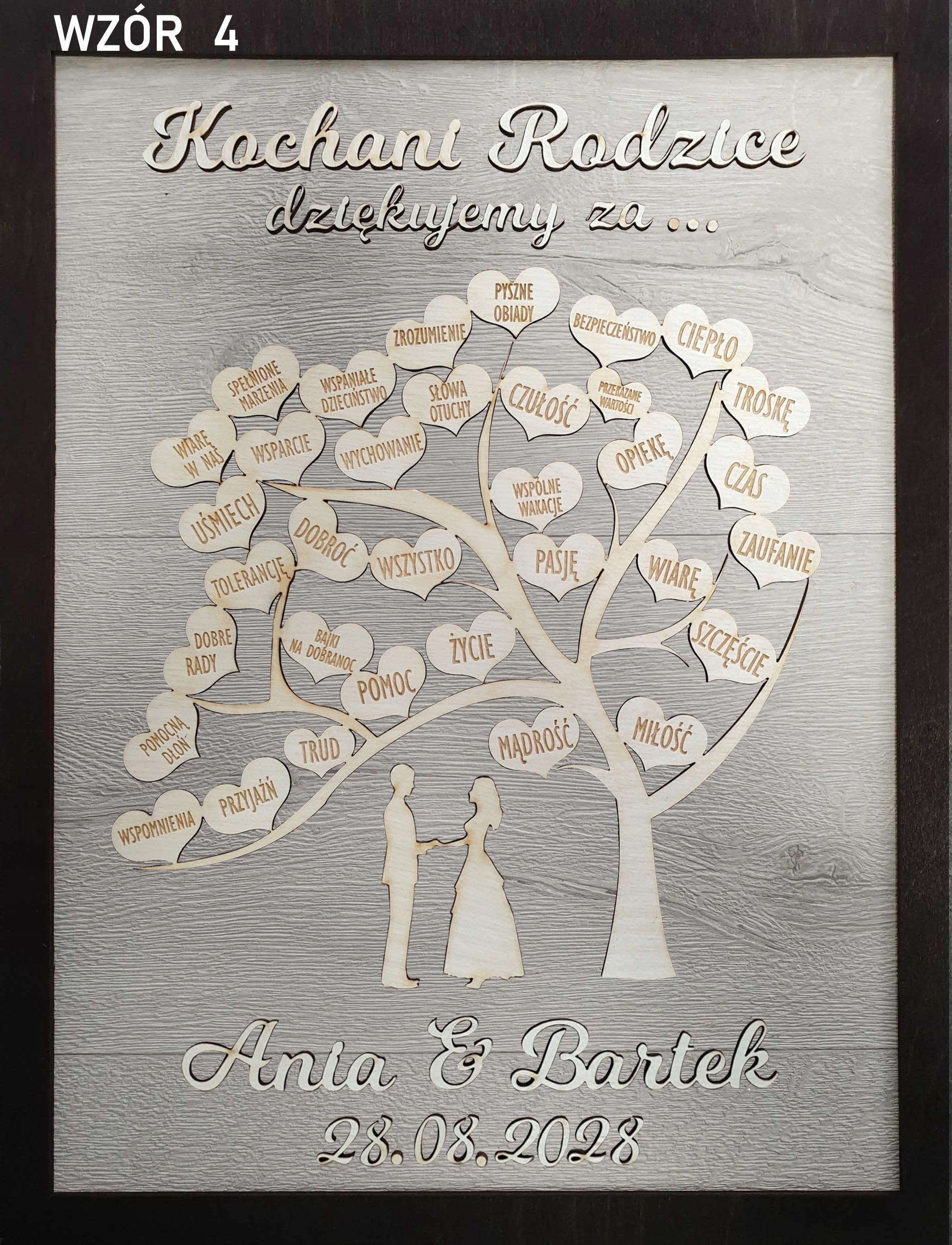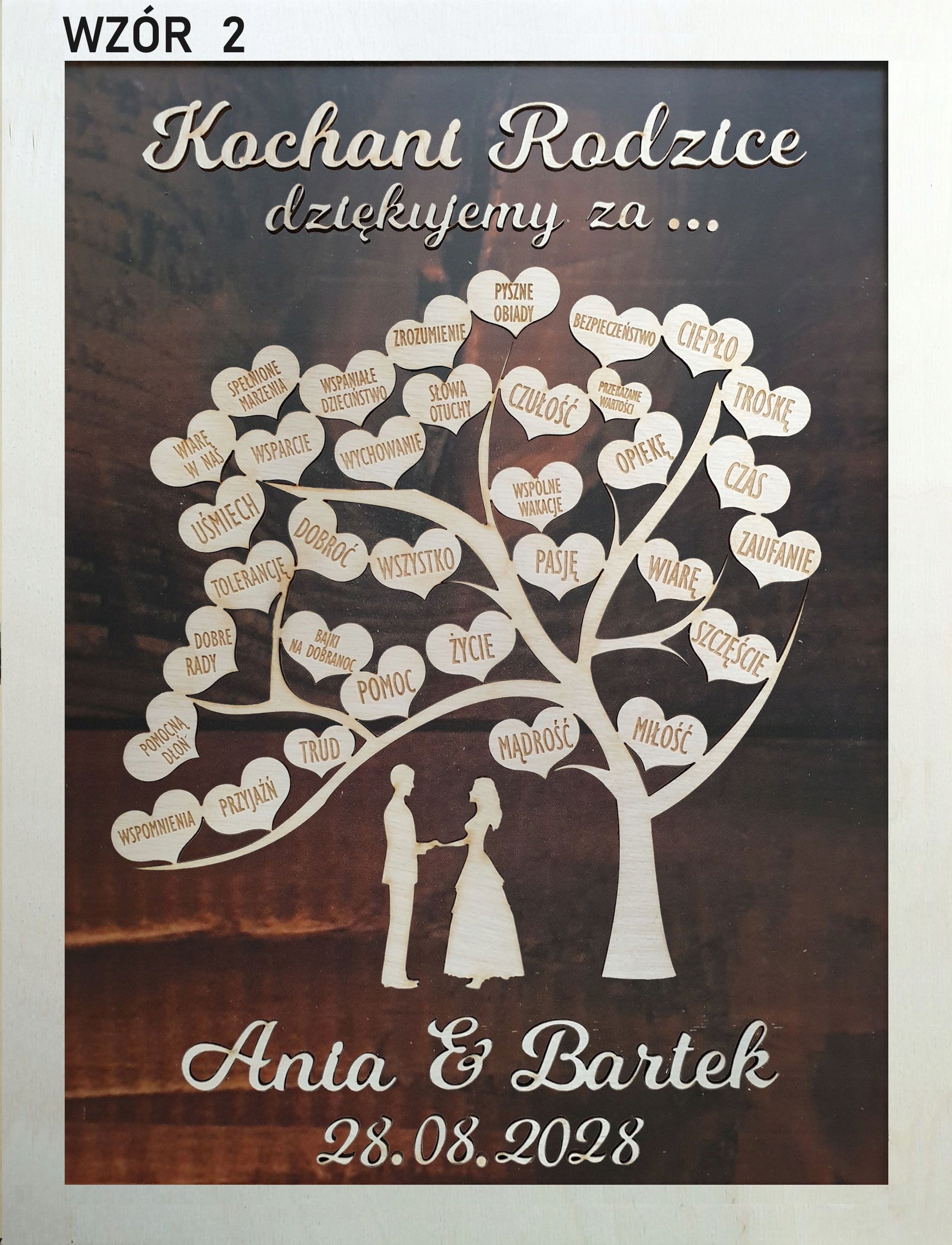 2. Імена нареченого та нареченої та дата весілля (наприклад, Аня, Бартек, 28 серпня 2022 р.)