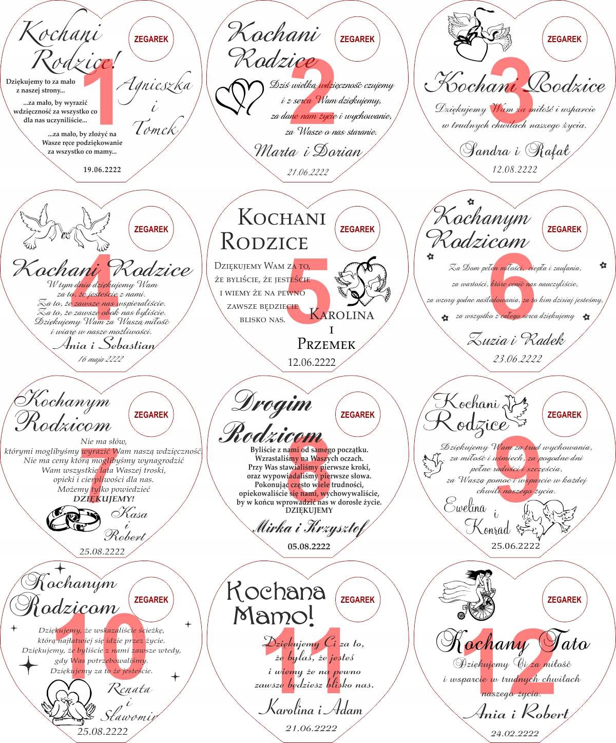 Дякуємо батькам ГРАВІРУВАННЯ ГОДИНИННИКА СЕРЦЕ 20см