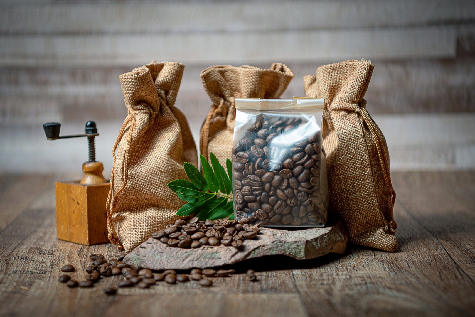 - 50 г суміші спецій для кави упакований у лляний мішок 10x14 см