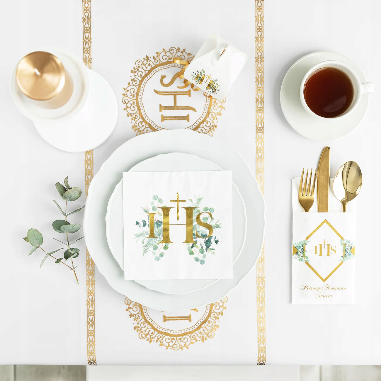 Унікальний дизайн, натхненний золотим мотивом IHS в оточенні ніжних евкаліптових гілок, надає елегантності та унікальності кожному подарунку.
