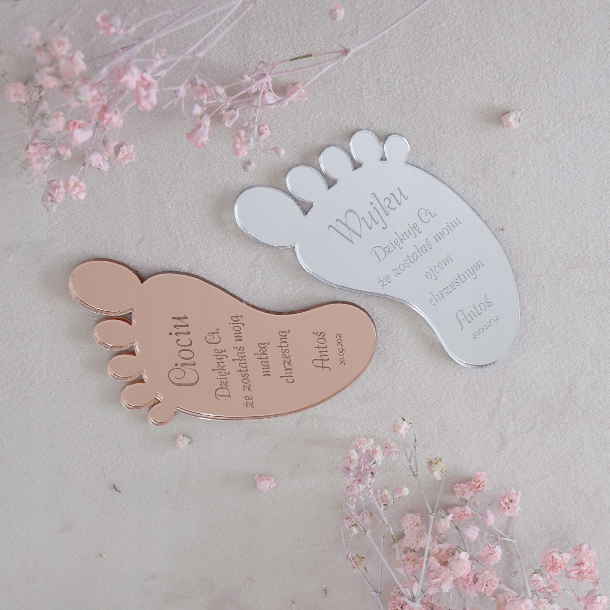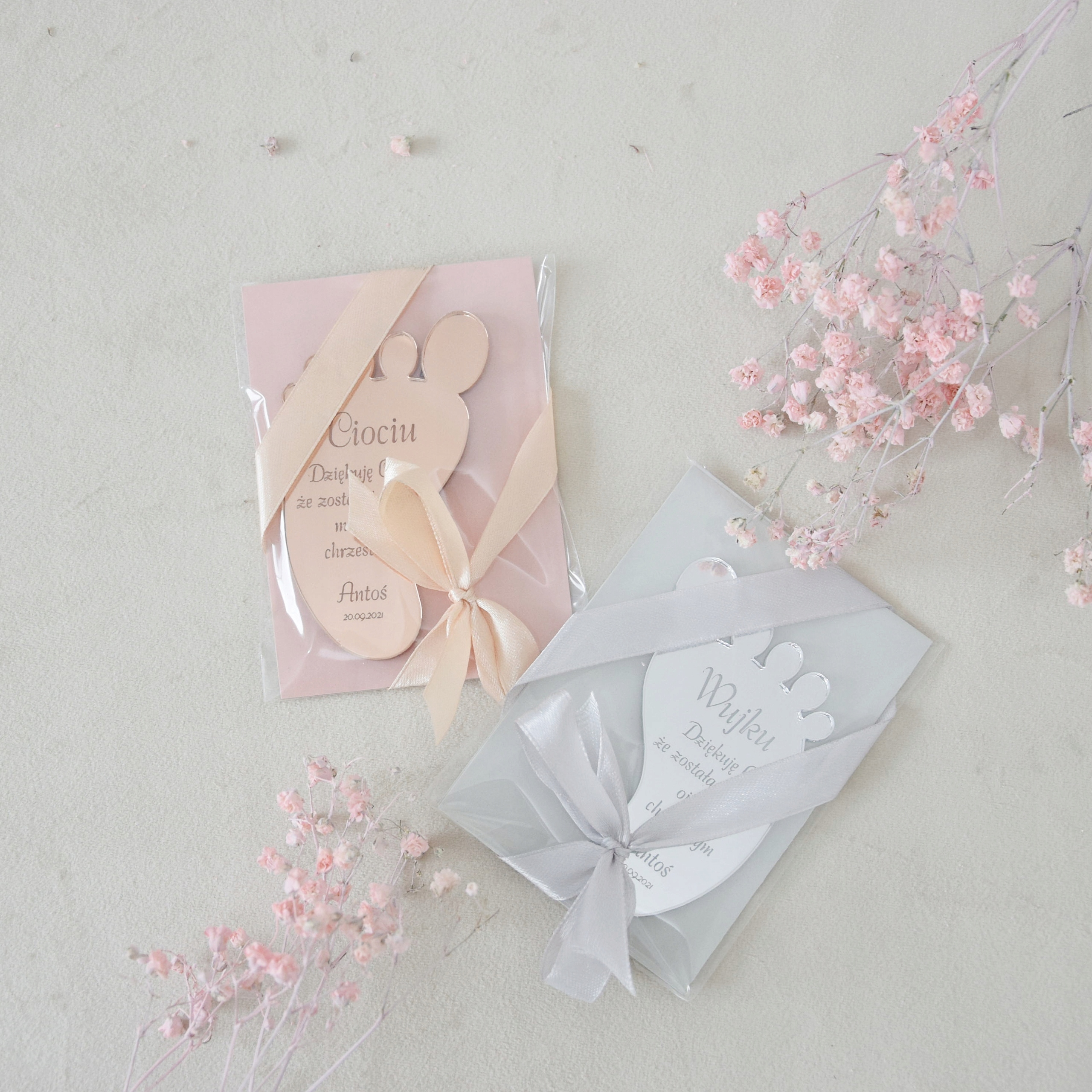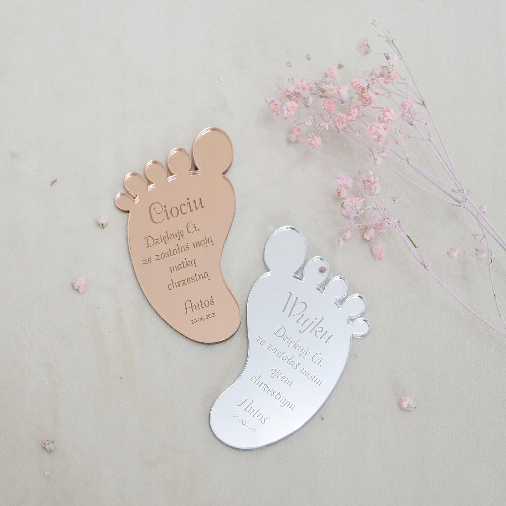 На нашому аукціоні ми пропонуємо 2 штуки Подяки хресним батькам у вигляді магнію з рожевого золота та срібла.