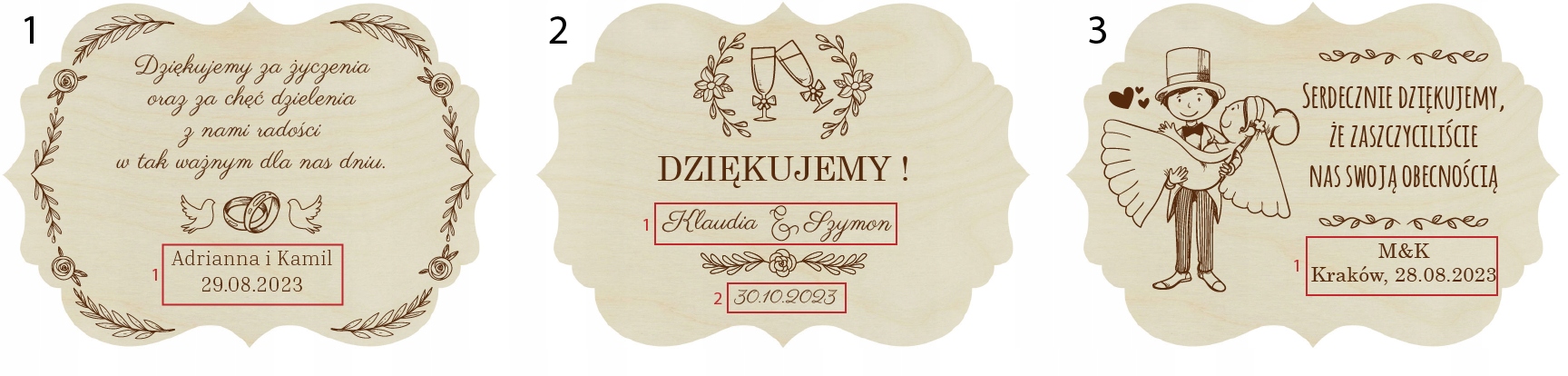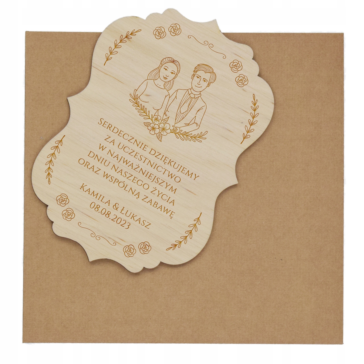 Дерев'яна, вигравірувана подяка для гостей весілля.