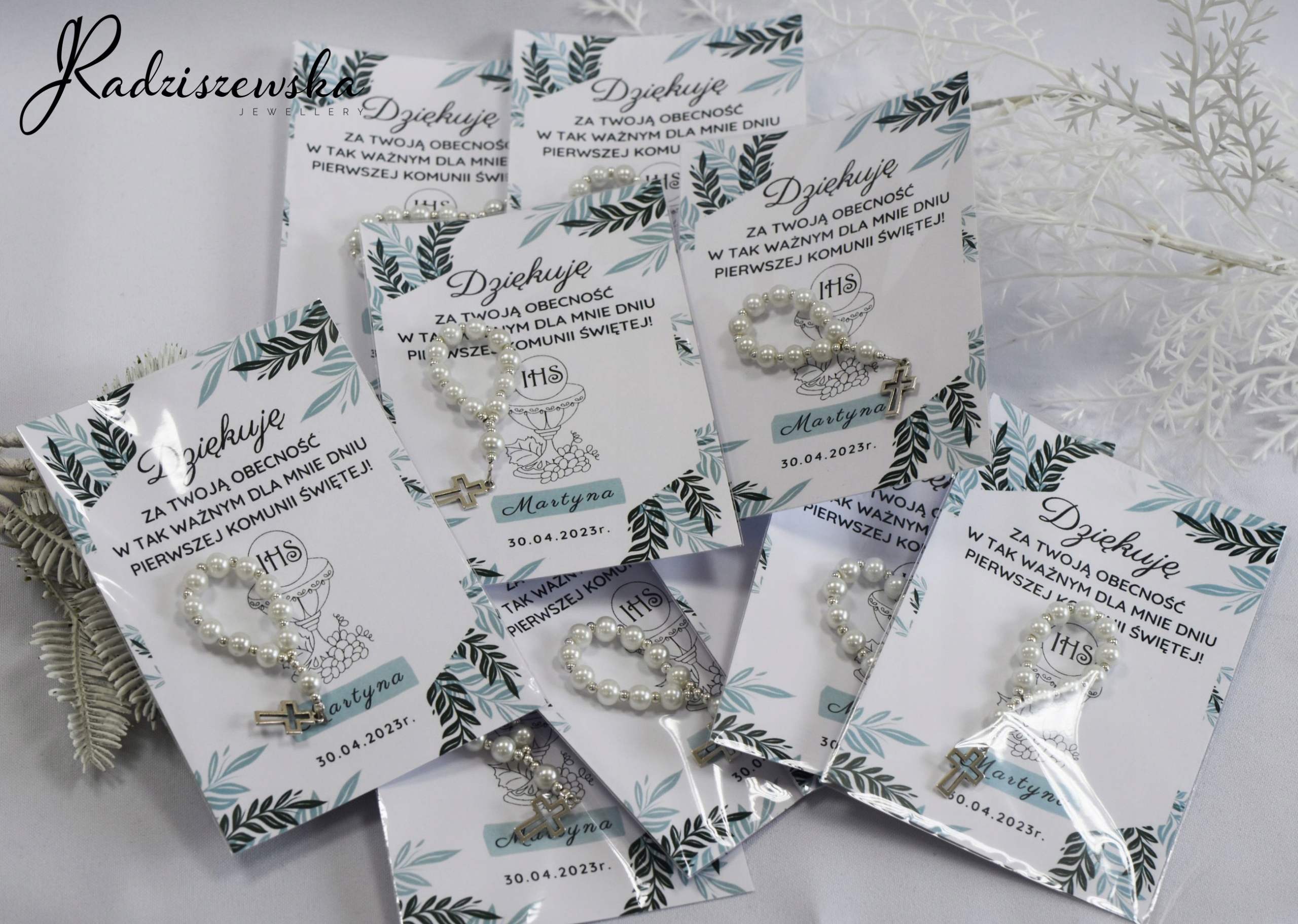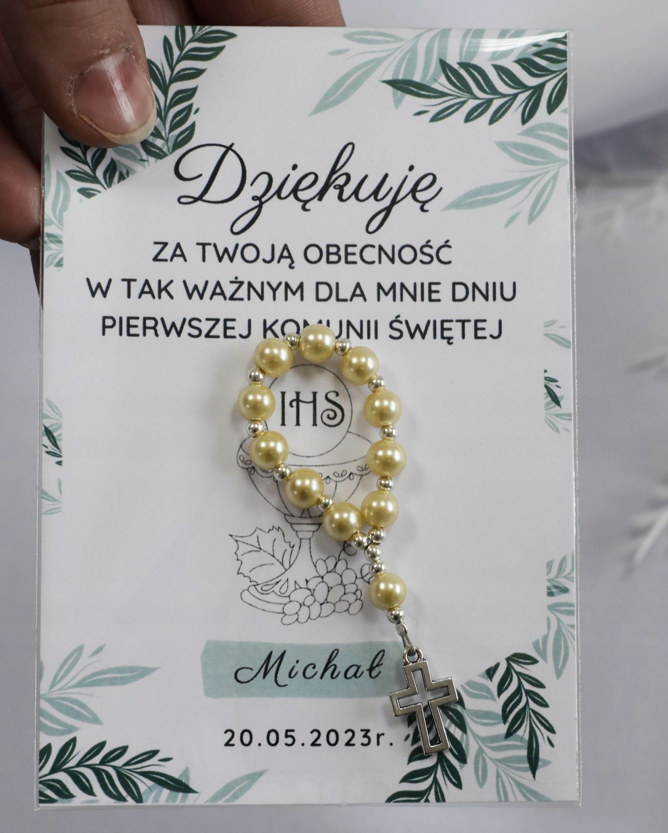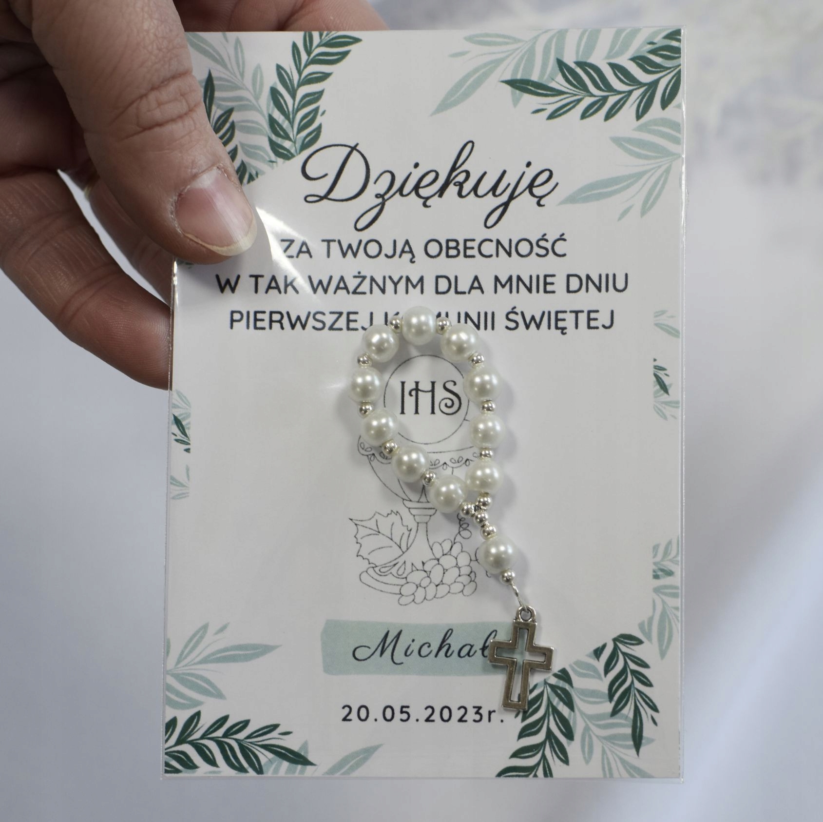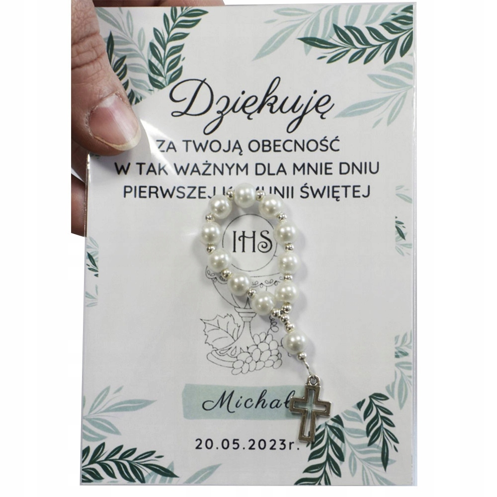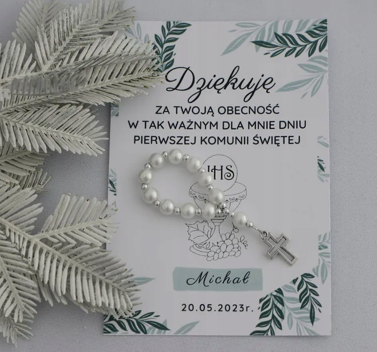 Дякуємо гостям, подарунок з перлинами Вервиці до Першого Святого Причастя