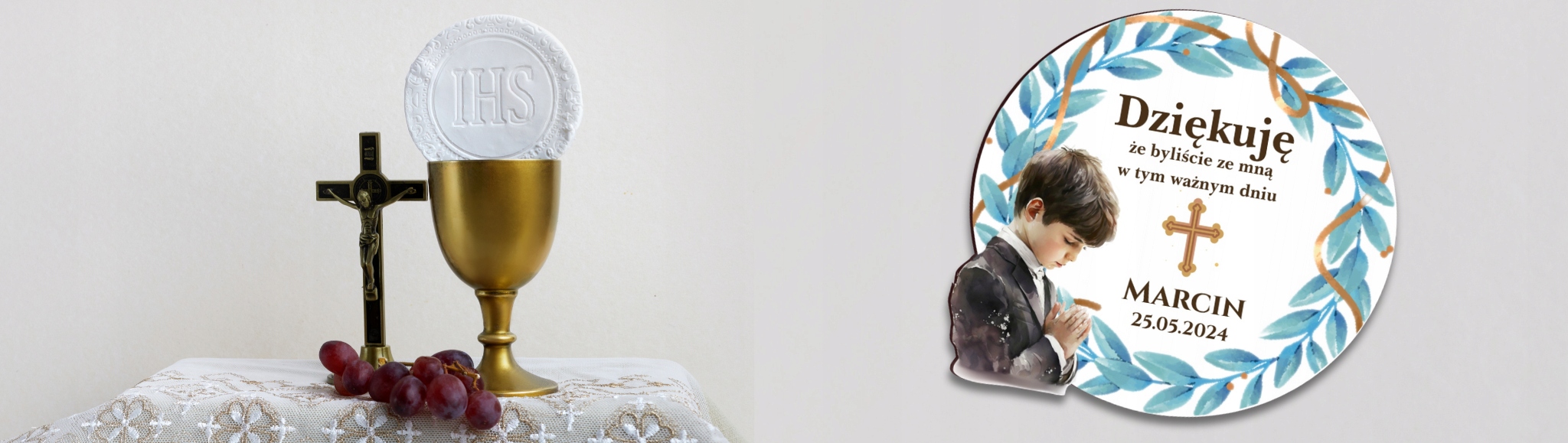 - Персоналізація: ім’я дитини та дата Святого Причастя
