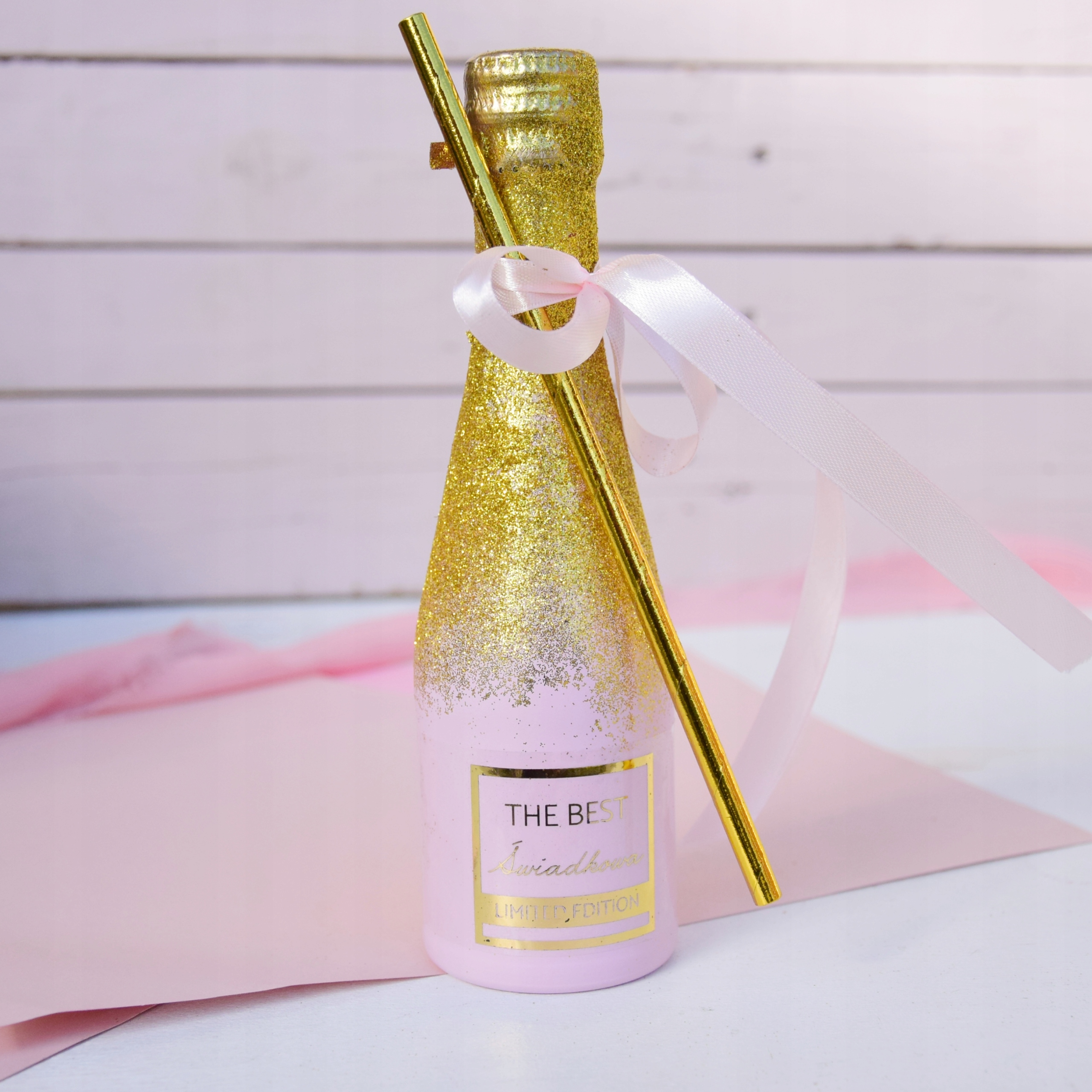 - міні безалкогольне шампанське, колір: рожевий + блискітки + етикетка + тюбик