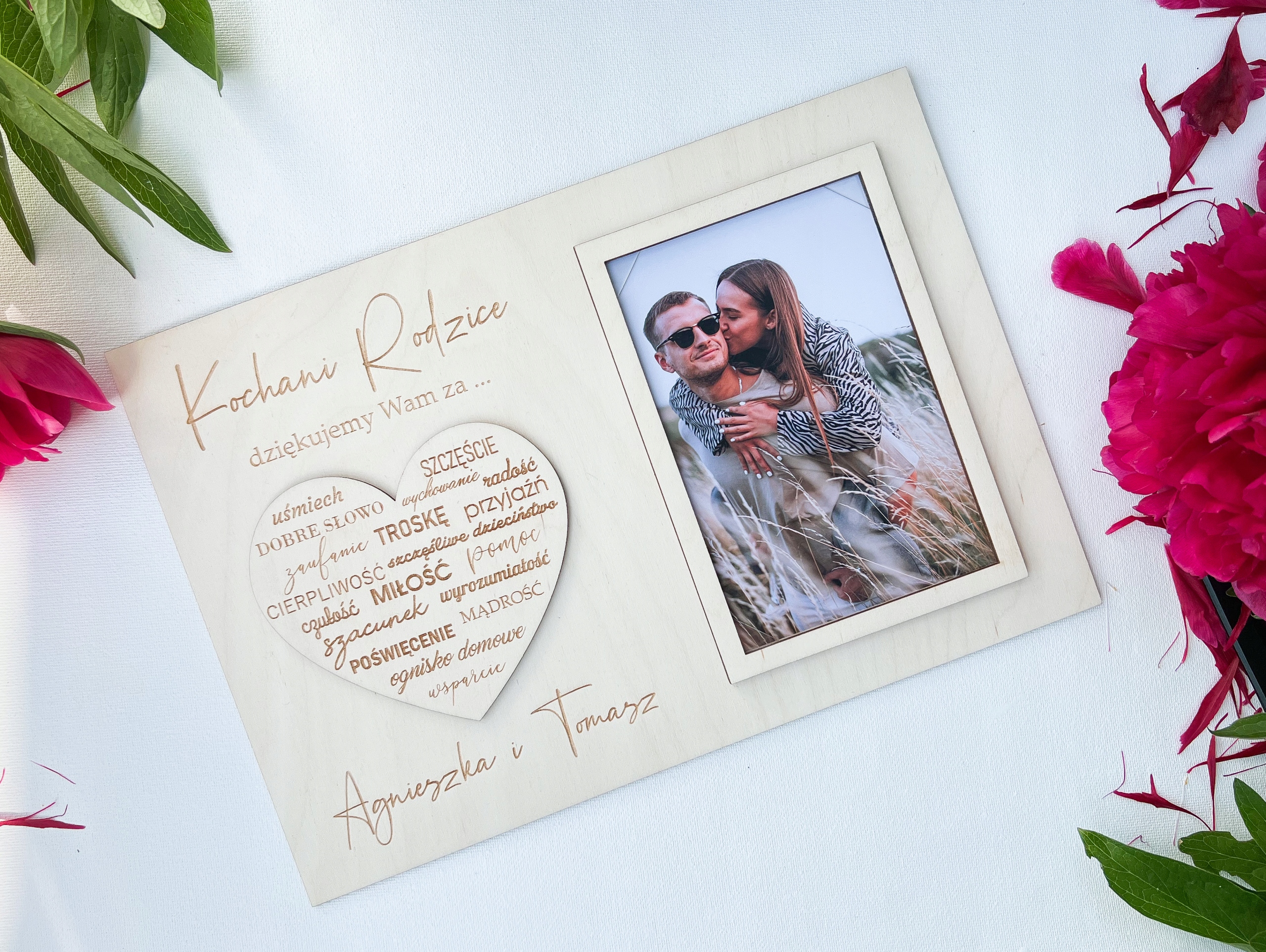 Дерев'яна листівка з подякою та місцем для фото — ідеальна ідея для подарунка.