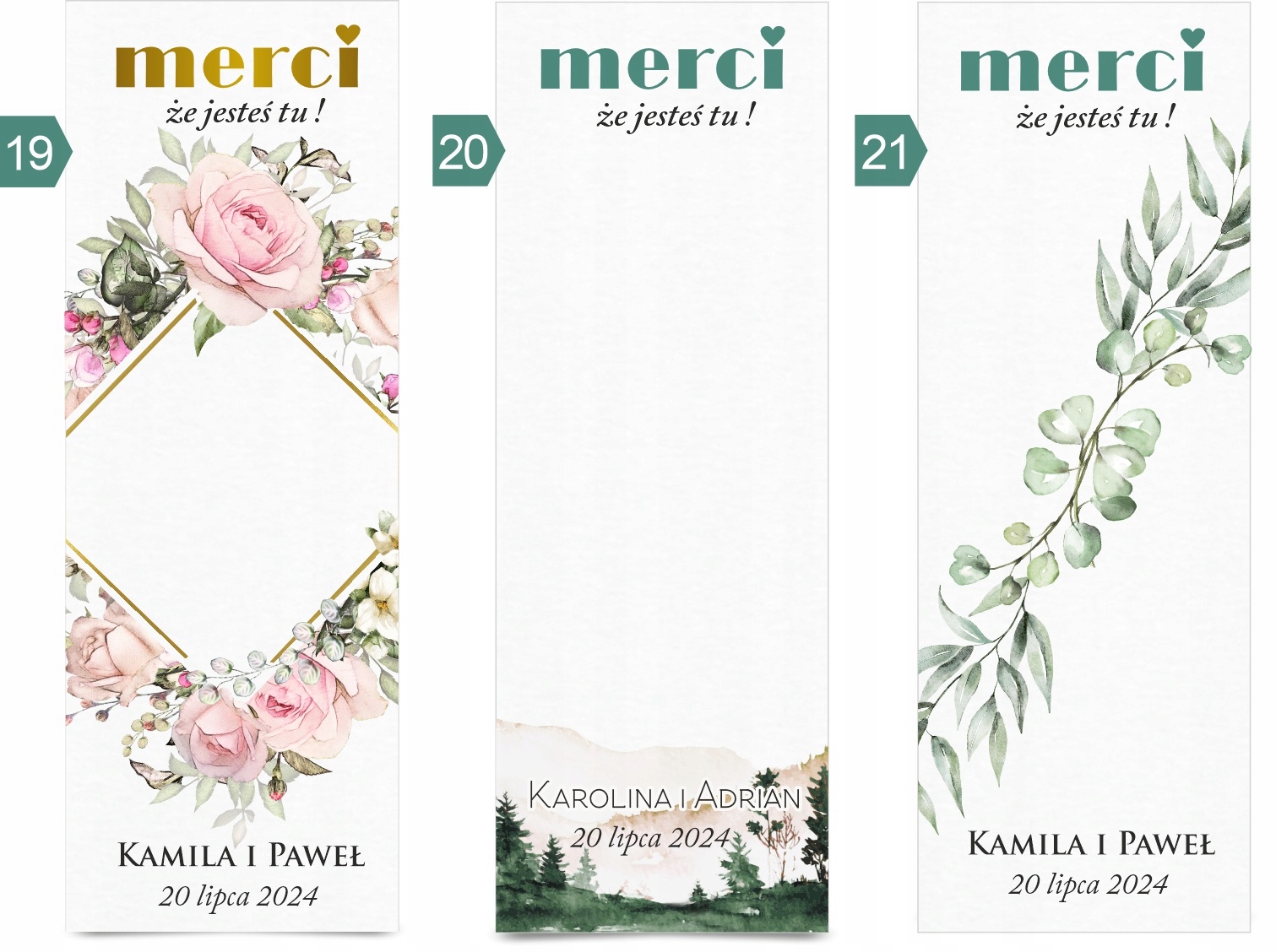- Надішліть нам свої персональні дані (вибір ВИЗЕРУНОК, імена, дата, можливий текст подяки, якщо він має відрізнятися від напису "MERCI, що ви тут")