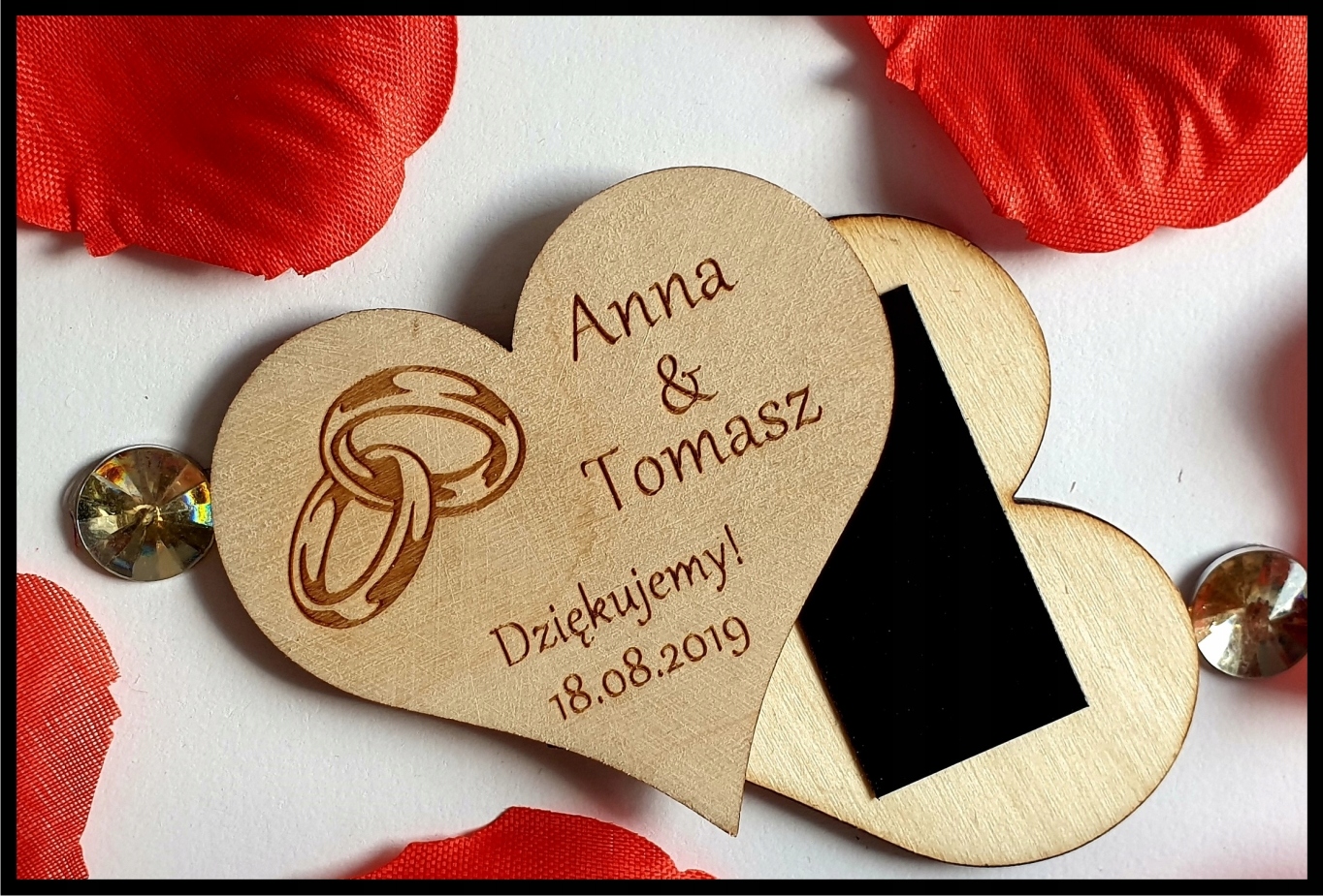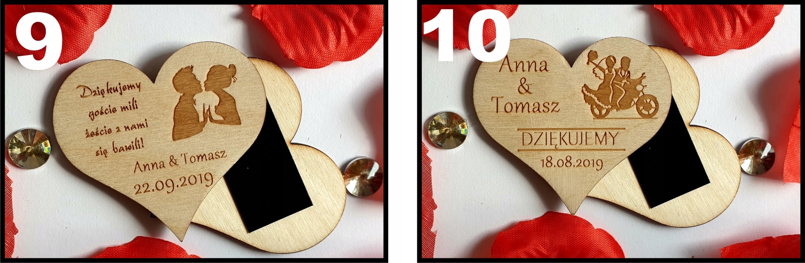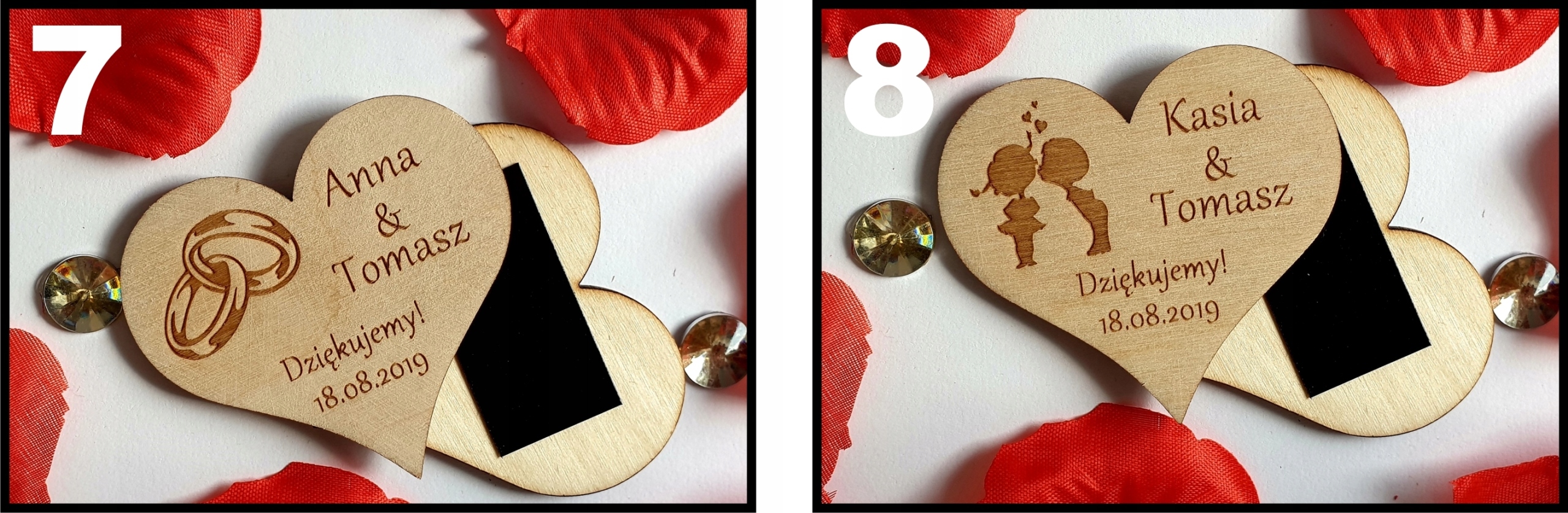 Ми повинні запропонувати елегантну подяку гостям на весілля, хрещений у вигляді дерев’яних магніти для холодильника.