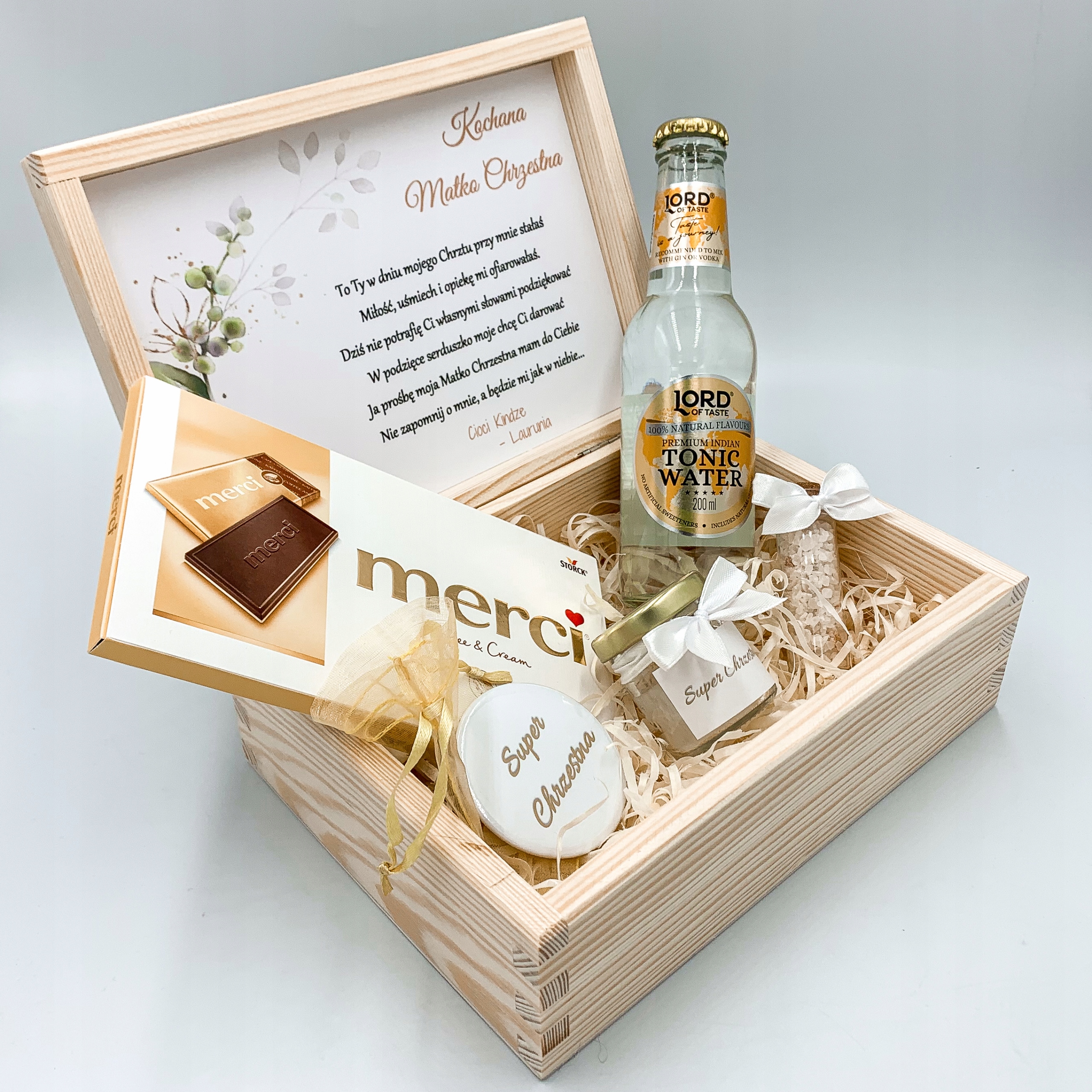 Дерев'яна скринька у вигляді подячного подарунка за те, що ви стали хрещеною мамою. Всередині є етикетка з текстом, який видно на фото. Представлений GiftBox - унікальний та оригінальний подарунок, який неодмінно порадує кожну Хрещену.