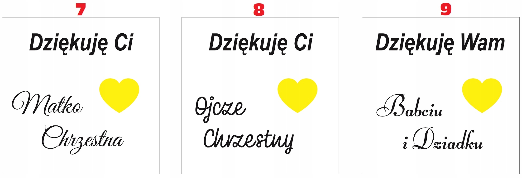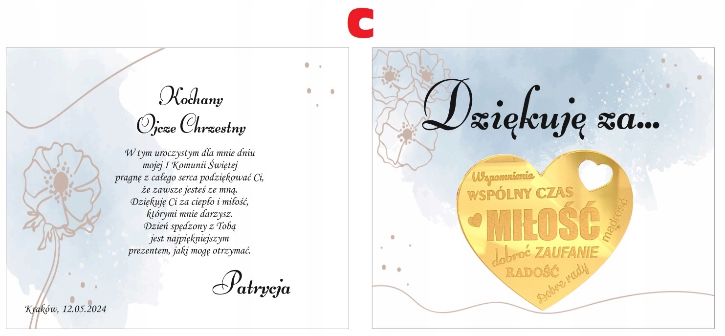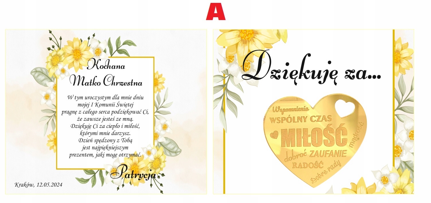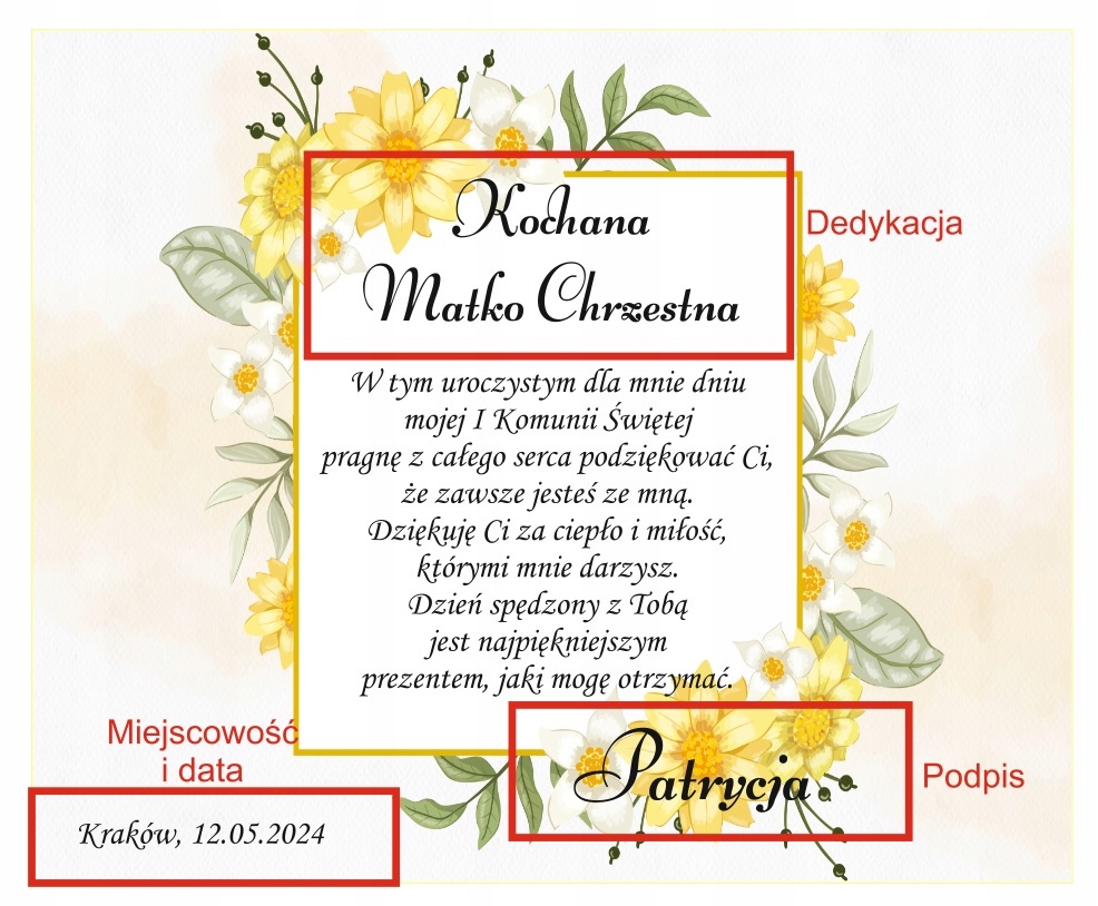На запит клієнта можна змінити вміст подяки. Якщо вміст подяки не буде надано, вони будуть надруковані, наприклад, на прикладі: "У цей урочистий день для мене ..."