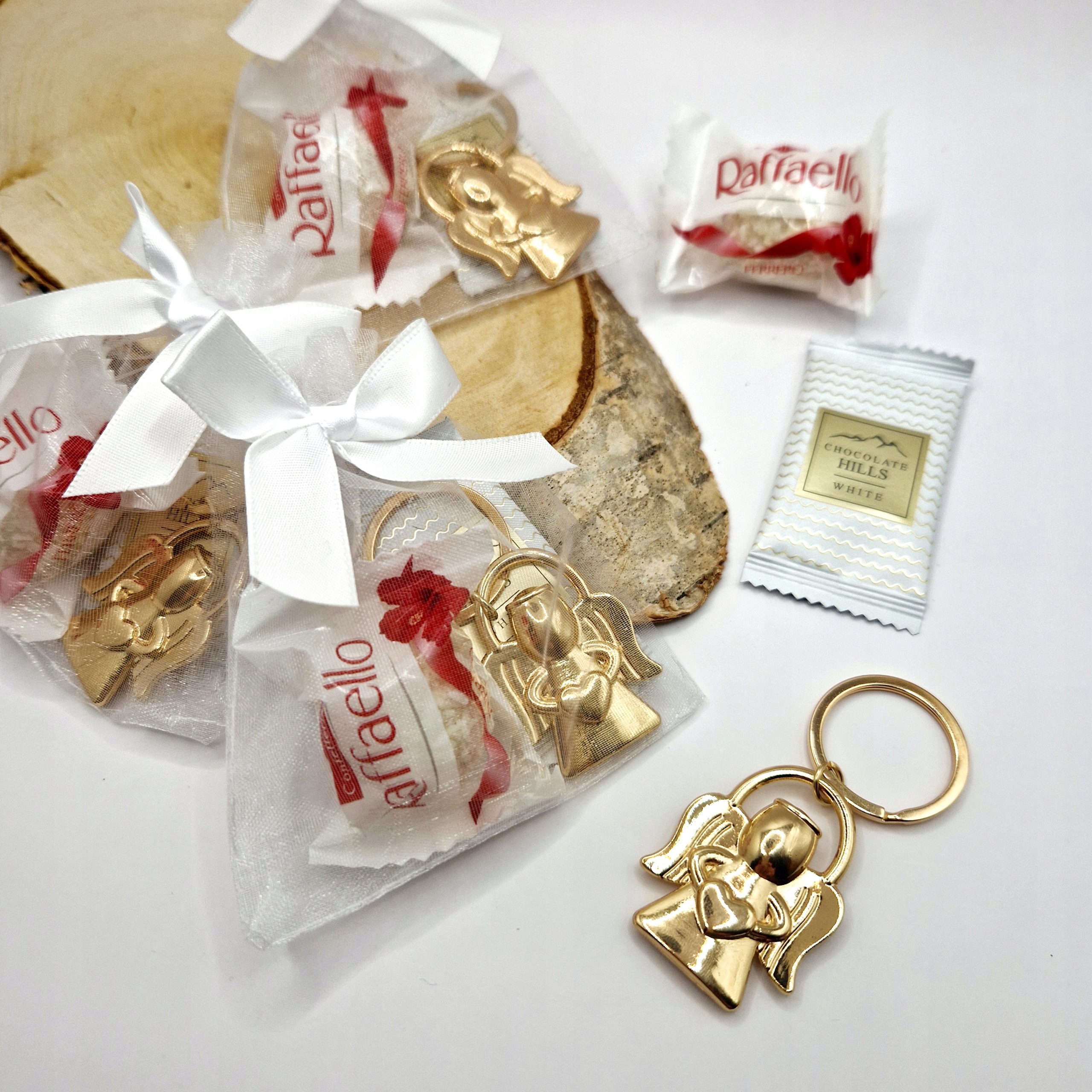 Завдяки гостям Святому Хрещенню та Причастя (Золотий Ангел Бійчейн) у білому мішку з органзи з Рафаелло та шоколадом