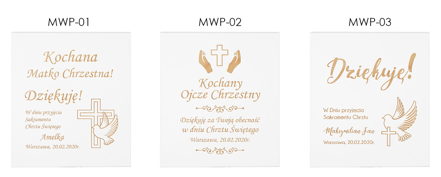 Індивідуальні коробочки та вкладиші дають можливість створити гарний подарунок, який на 100% відображатиме те, що ви хочете сказати цій особливій людині. Записка подяки в коробці стане ідеальним подарунком для хрещеної матері, хрещеного батька, тітки чи дядька.