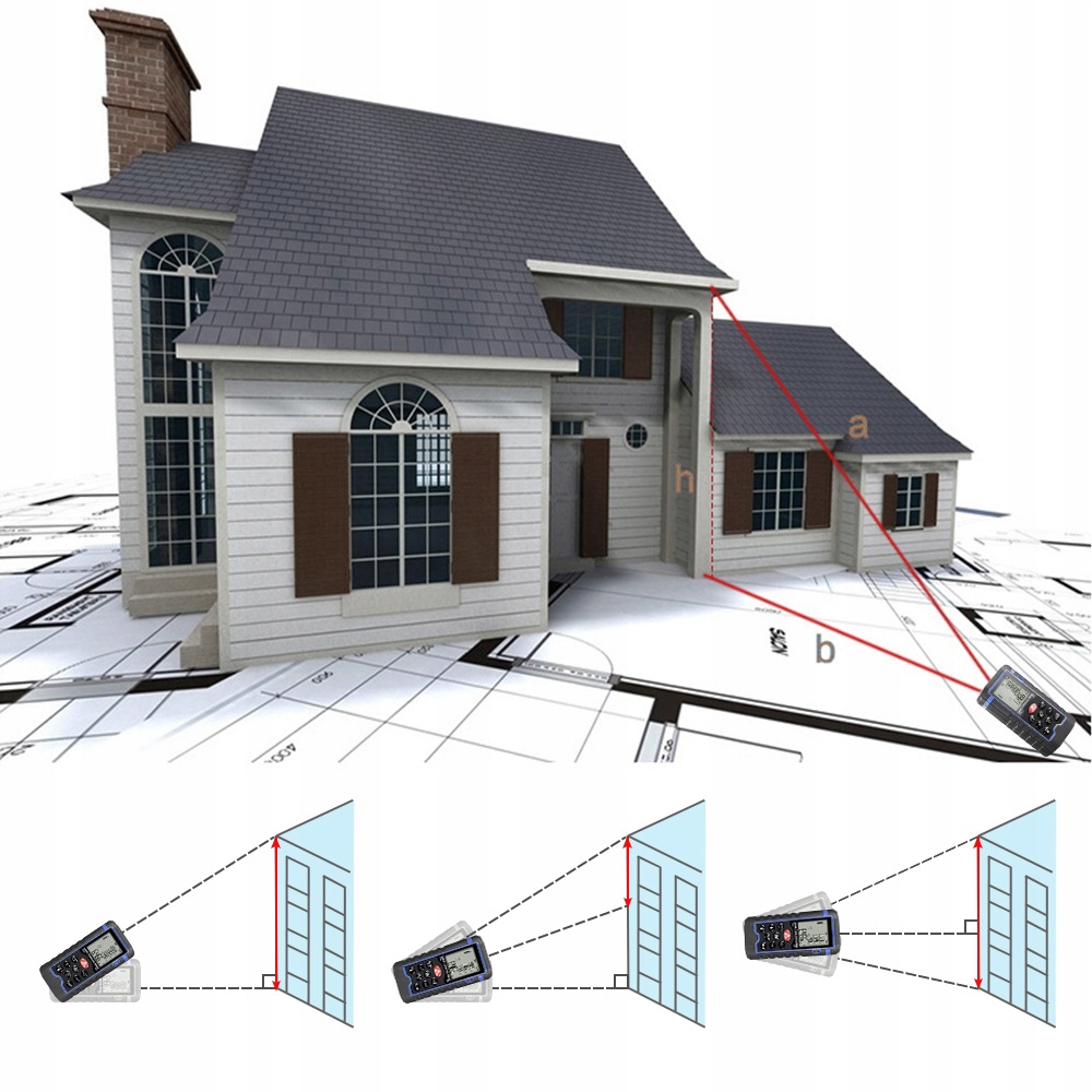 лазерний діапазон використовується для визначення відстані від об'єкта за допомогою лазерного потоку . Цей зручний і невеликий пристрій використовується під час, наприклад Інвентар будівель, а також при вимірюванні великих районів , як кімнати, квартири, будівлі, фабрики, склади, сади, дороги, інфраструктури.