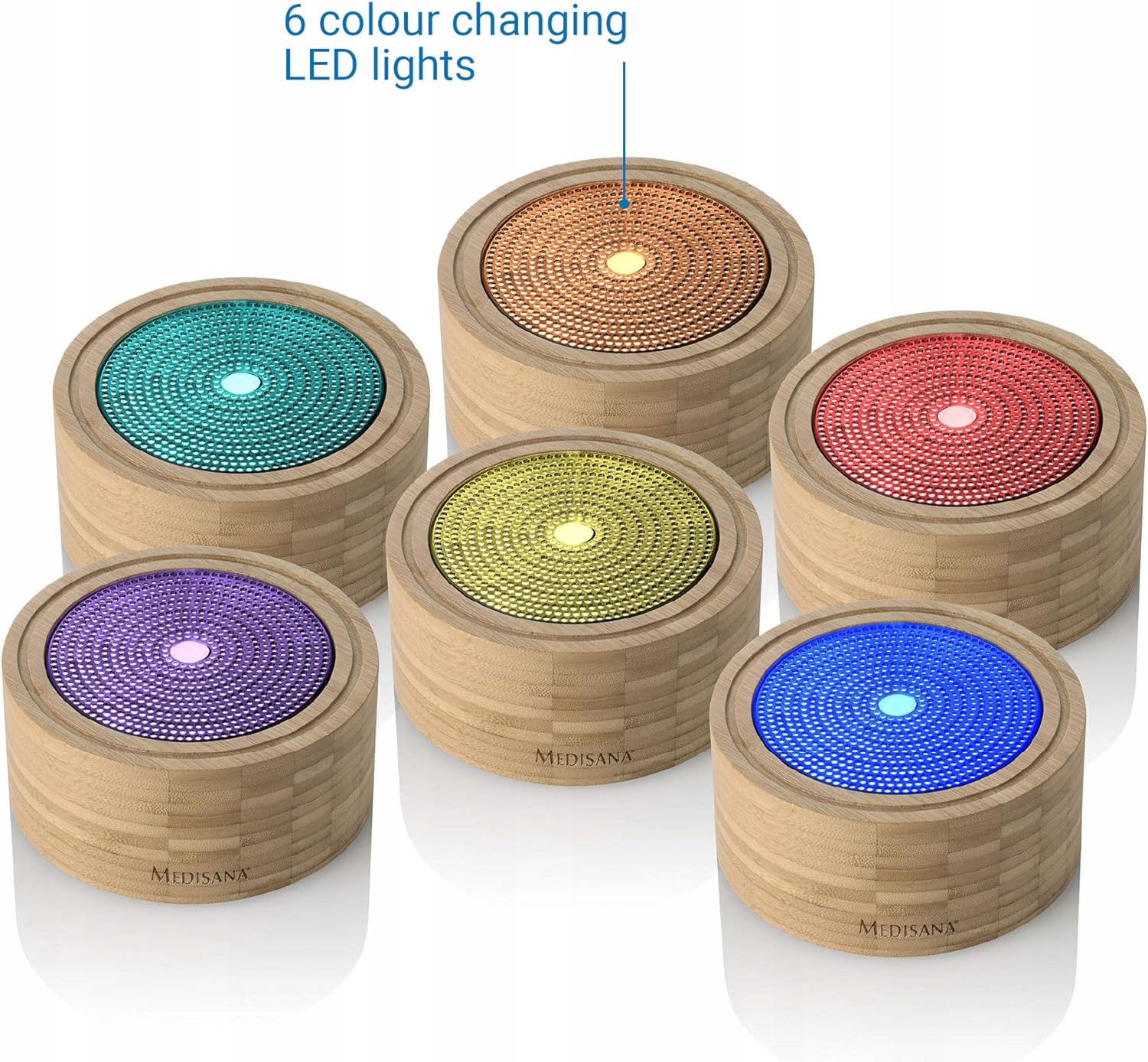 medisana AD 625 Bamboo Aromatic Diffuser, освіжувач повітря, ароматична лампа з таймером, електричний ароматичний дифузор, ароматичні олії, Wellness Light у 6 кольорах, 100 мл