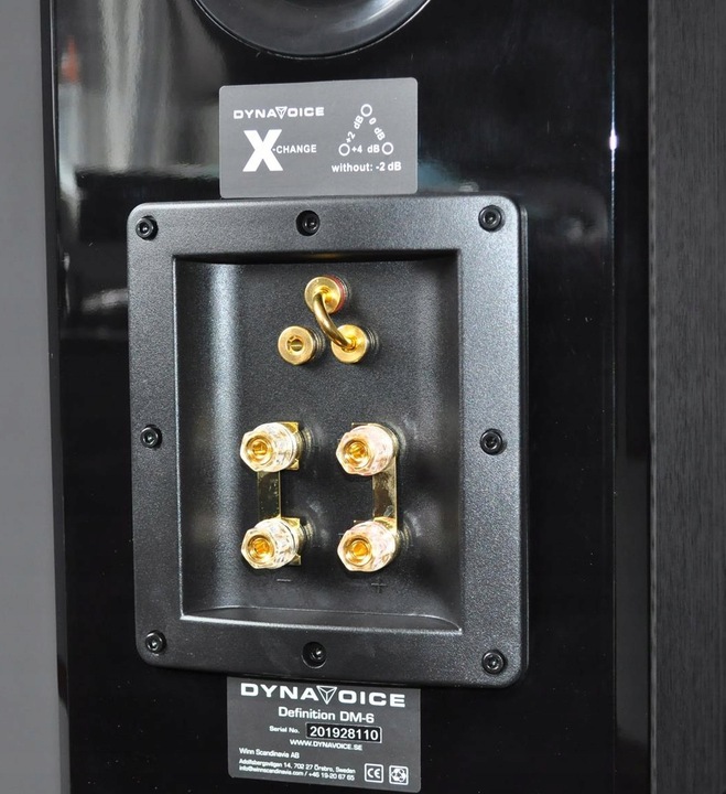 Кожна людина має різний звуковий шаблон, не кажучи вже про різний звук електроніки, яка грає музику. Тому серія Definition оснащена клемами X-change. У верхній частині терміналу є три позолочені контакти, які дозволяють точно налаштувати діапазон середніх частот (змінюючи діапазон високих частот). Ви можете вибрати з наступних параметрів: –2 дБ / 0 дБ / +2 дБ / +4 дБ. Зміна положення контакту змінює загальний характер звуку динаміка. Таким чином ми уникаємо використання регуляторів тембру в підсилювачі.