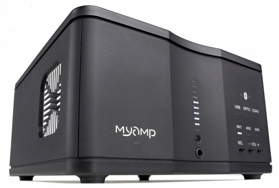 MyAmp — це революційний пристрій 3-в-1: висококласний ЦАП 24 біта/192 кГц, стереопідсилювач 2x60 Вт класу AB і приймач потокового аудіо через Bluetooth aptX.