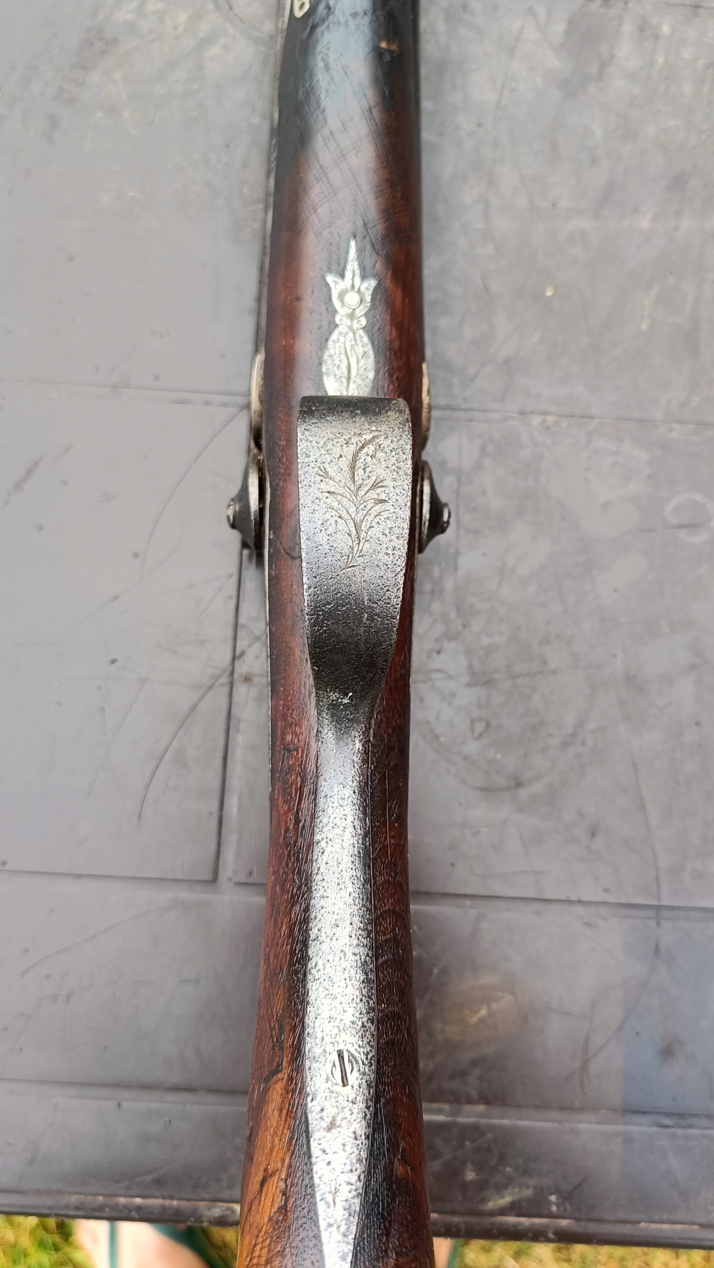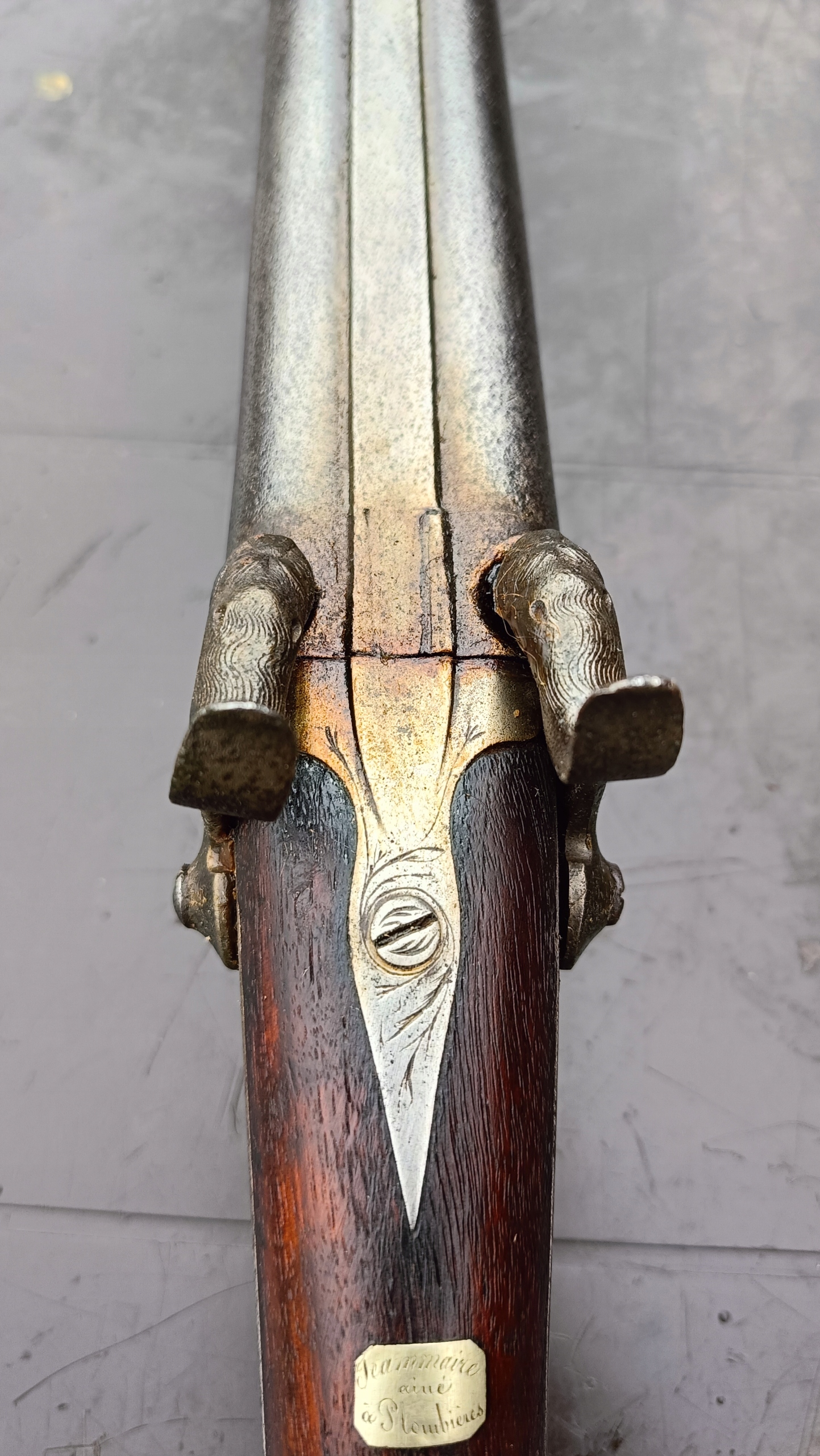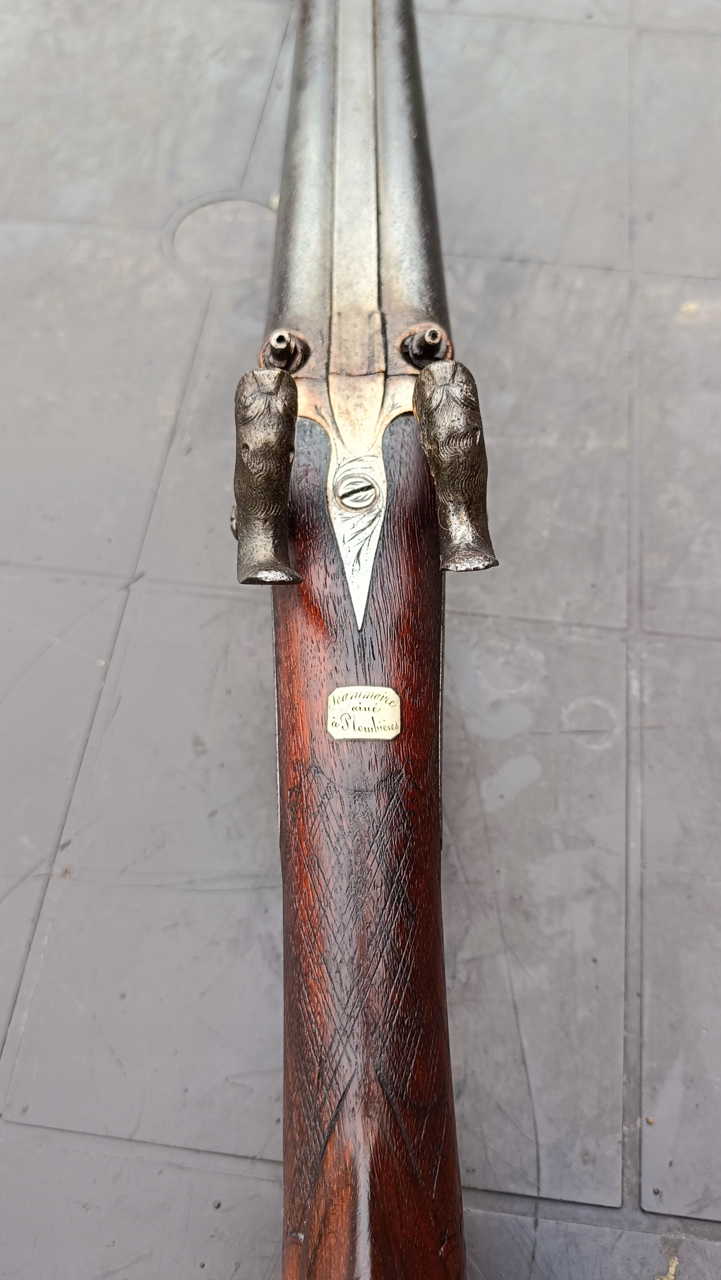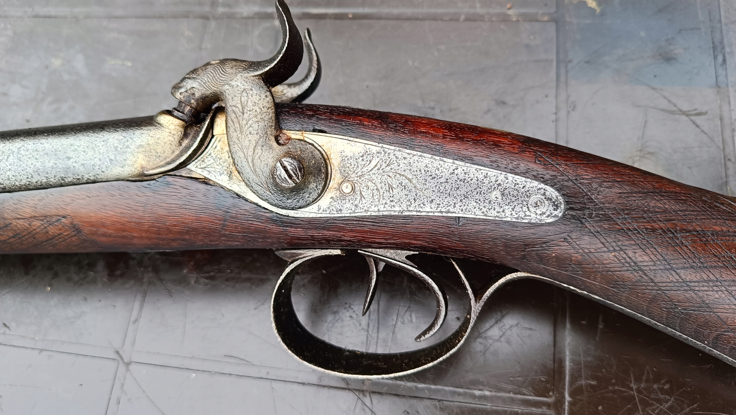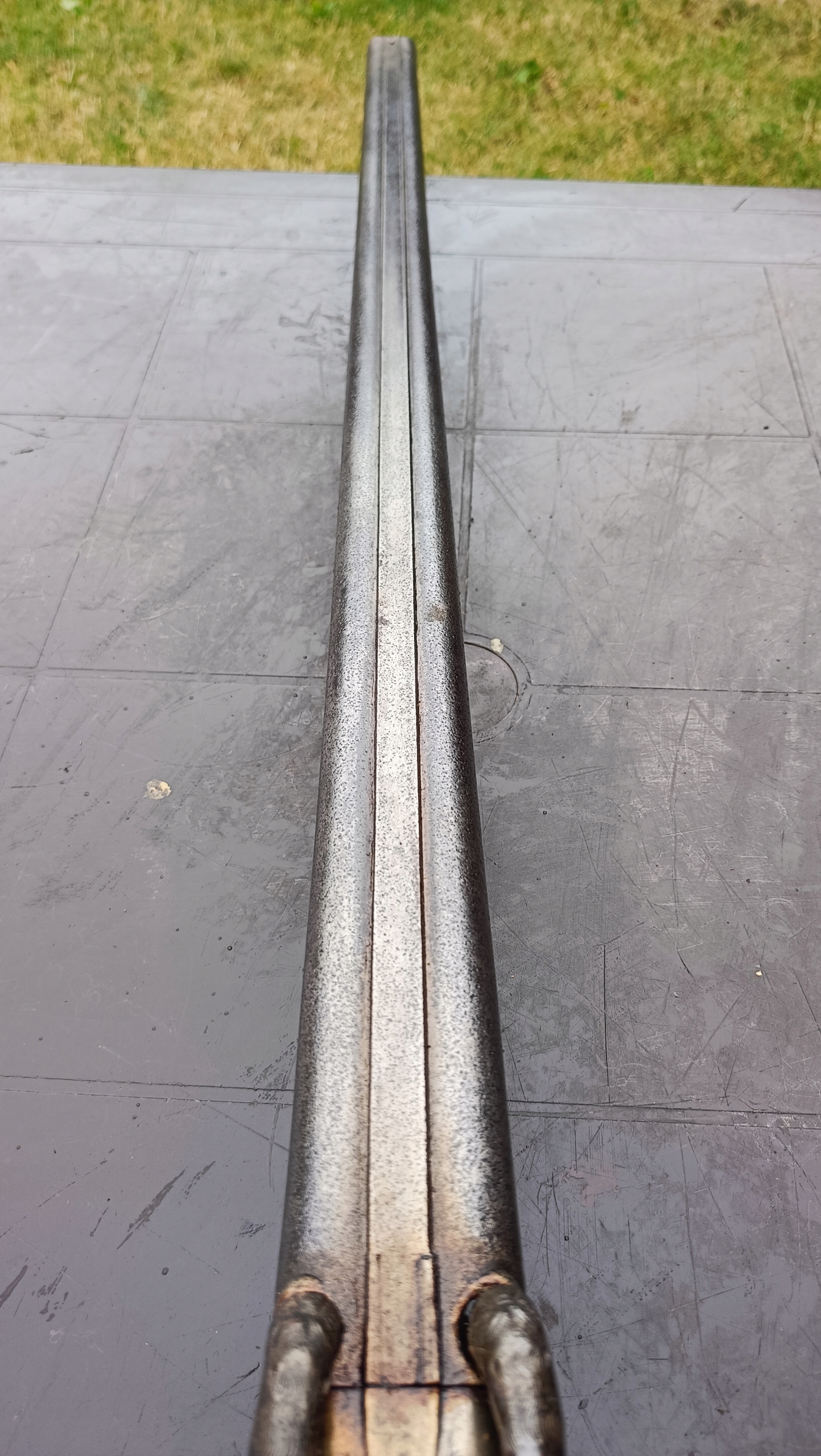 завантажено з фронту. Можна вистрілити сухий постріл, подвійне напруження. Замки тригера затягнуться 2 смуги. Проста бочка, має невеликі ями на всій бочці. Дерево має сліди тріщин. Камін у порядку.