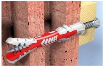 ■ Збільшена довжина анкерного кріплення (у випадку DUOPOWER 6x50, 8x65 і 10x80) означає, що цей дюбель особливо підходить для монтажу в порожнисту цеглу, газобетон і оштукатурені стіни.