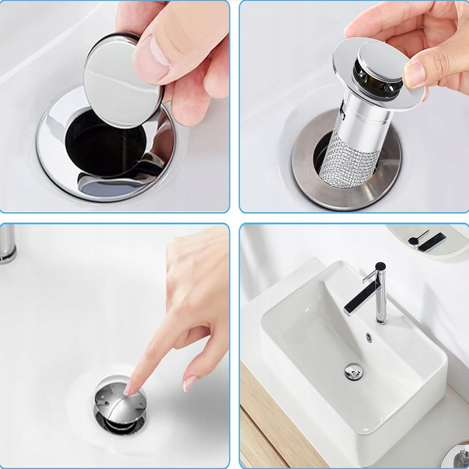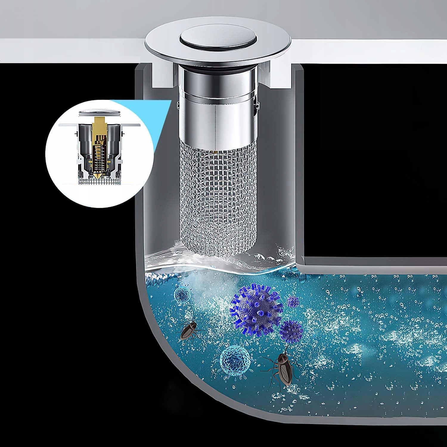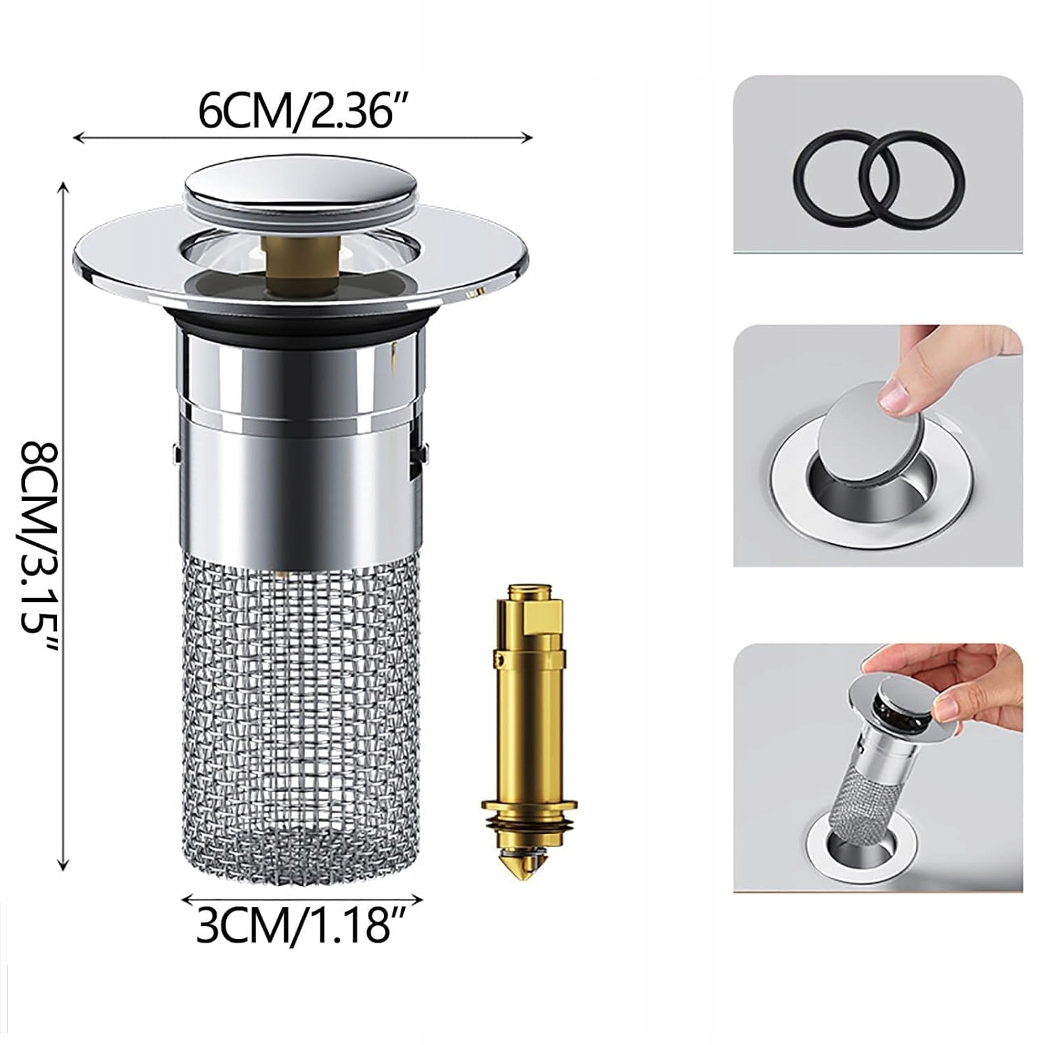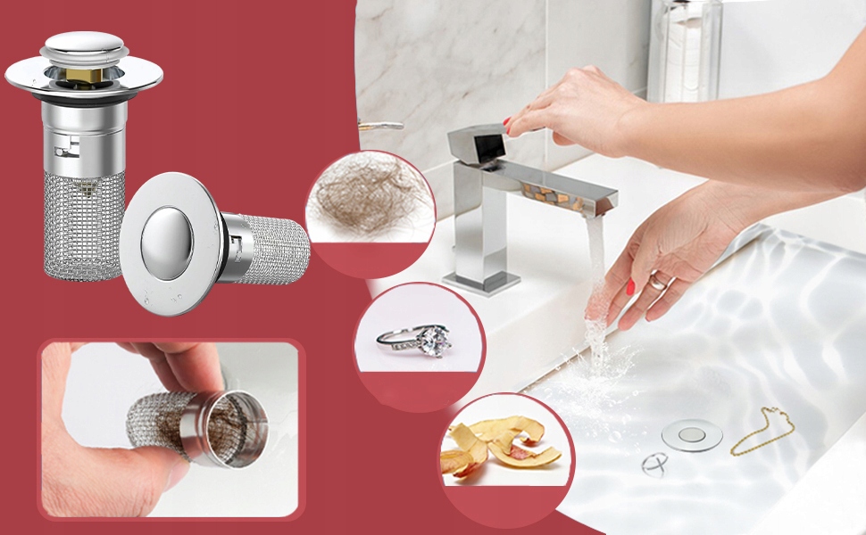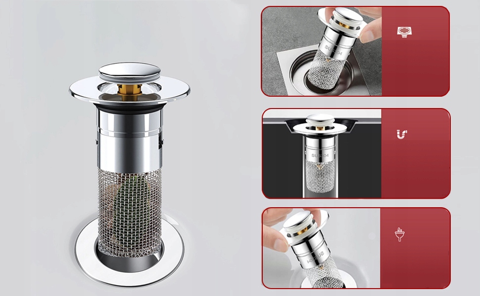 - ця висувна пробка для раковини має фільтр, який може фільтрувати речовини з волосся. Пробки для раковини та фільтри просто та практично об’єднані в одному.