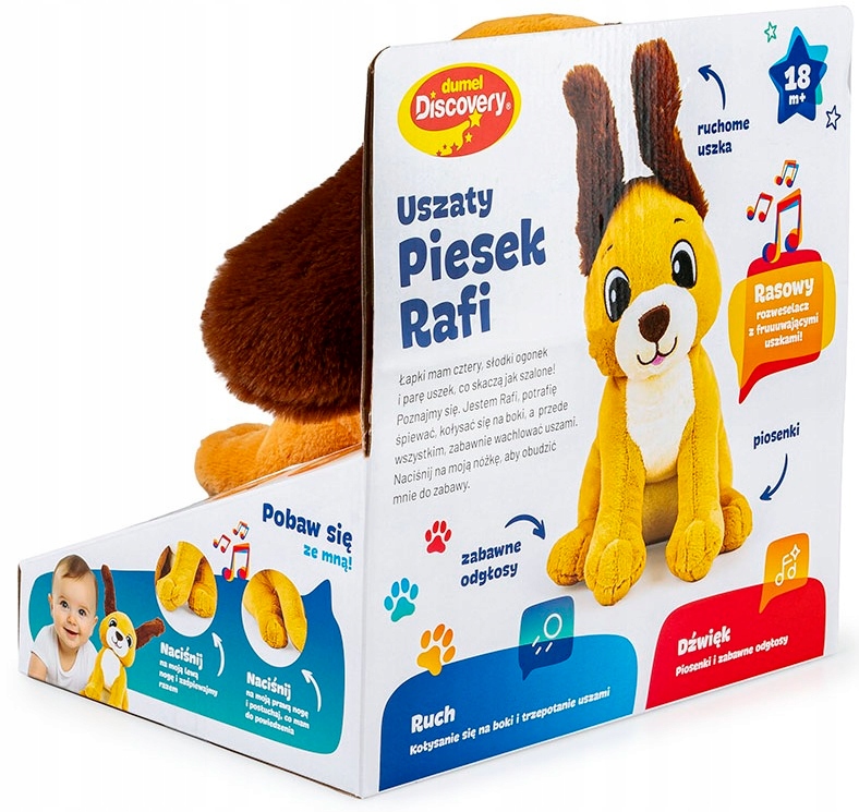 Просматривая «DUMEL EARED DOG RAFI имеет подвижные уши, поет песни, говорит по-польски.», вы можете быть уверены, что данный товар из каталога «Раннее обучение» будет доставлен из Польши и проверен на целостность. В цене товара, указанной на сайте, учтена доставка из Польши. Внимание!!! Товары для Евросоюза, согласно законодательству стран Евросоюза, могут отличаться упаковкой или наполнением.