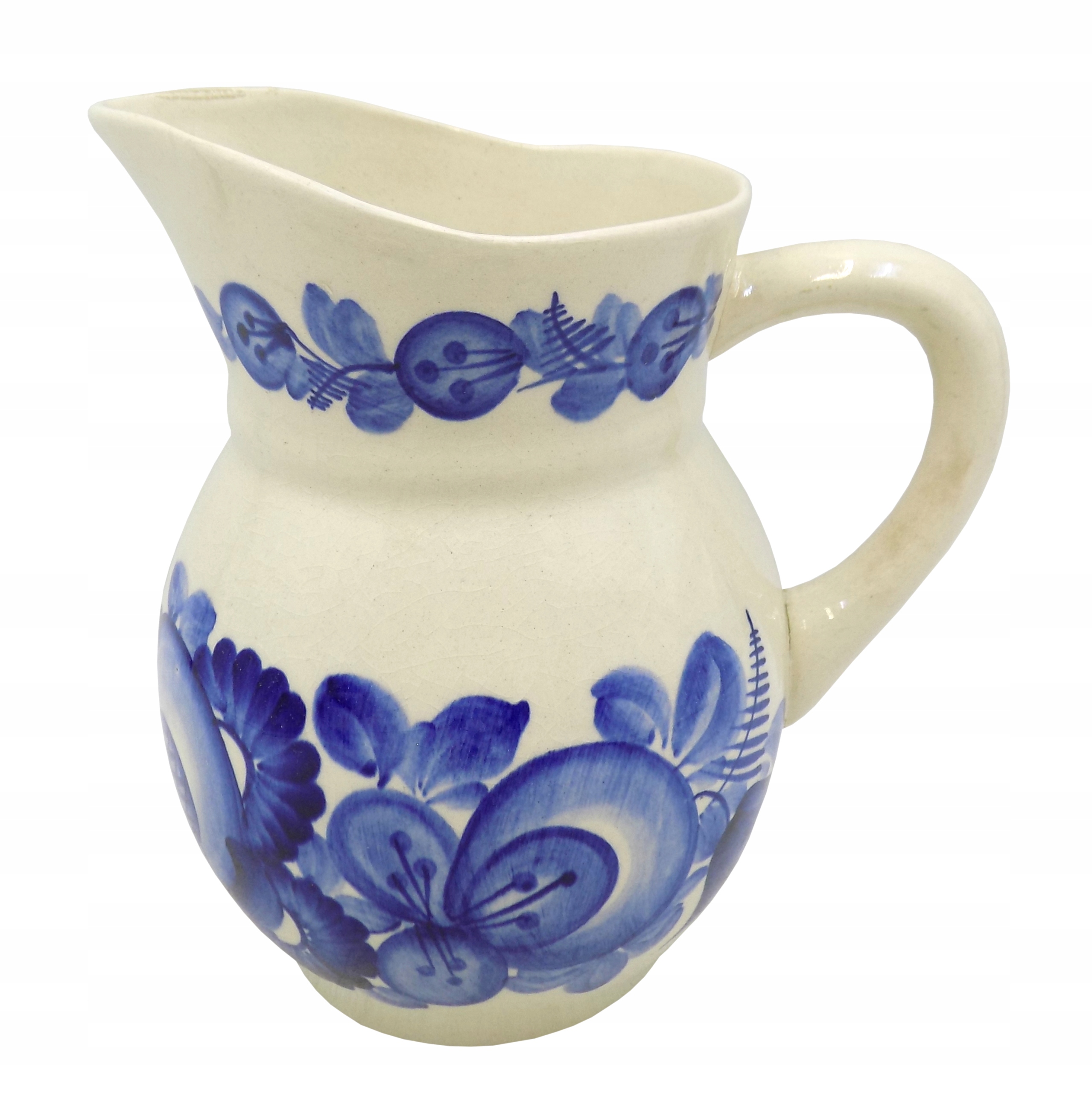 Глечик із фаянсу з Влоцлавека 1970-1980-х років. Підписано. Ручний розпис. Розміри; висота 19 х 18,5 х 13,5 см.