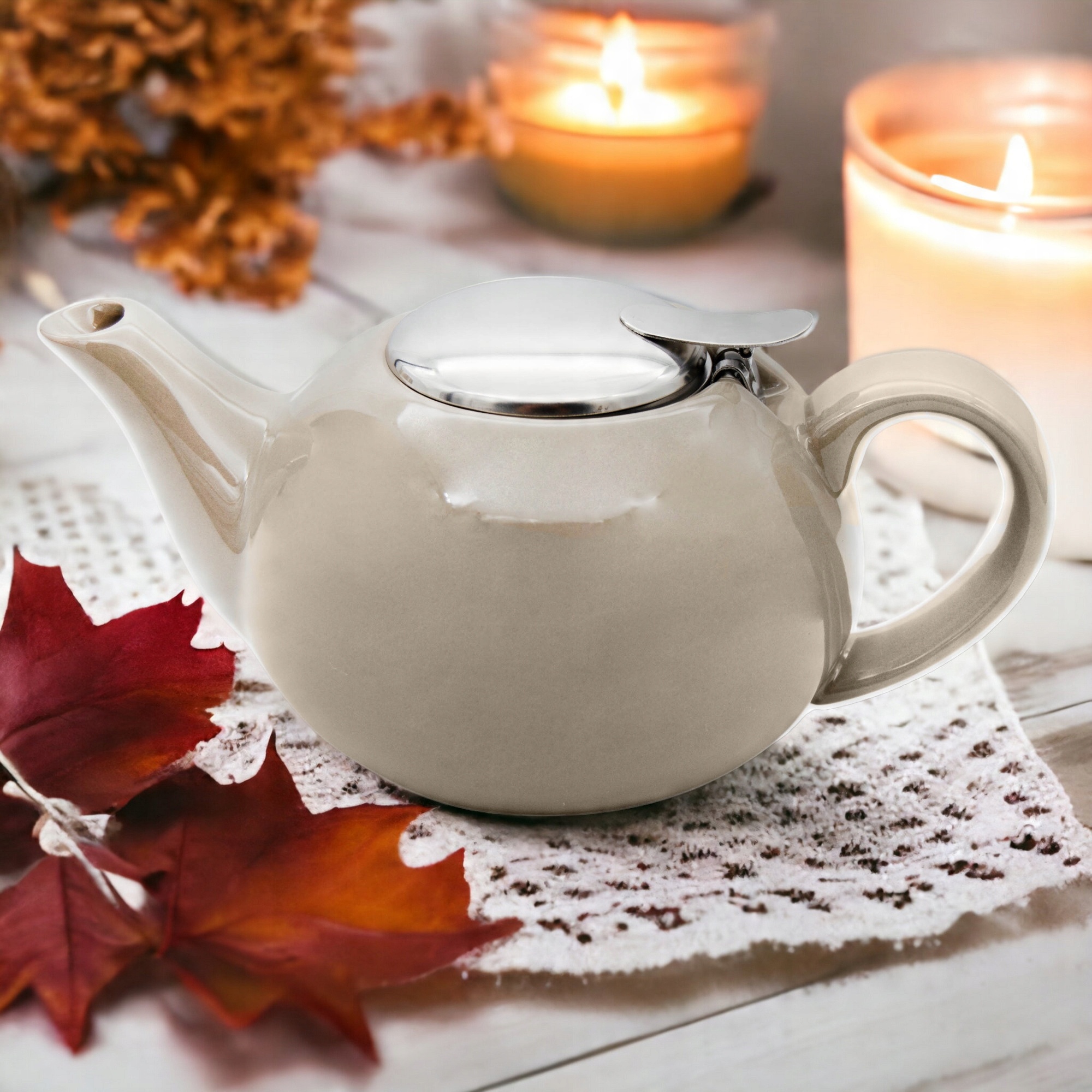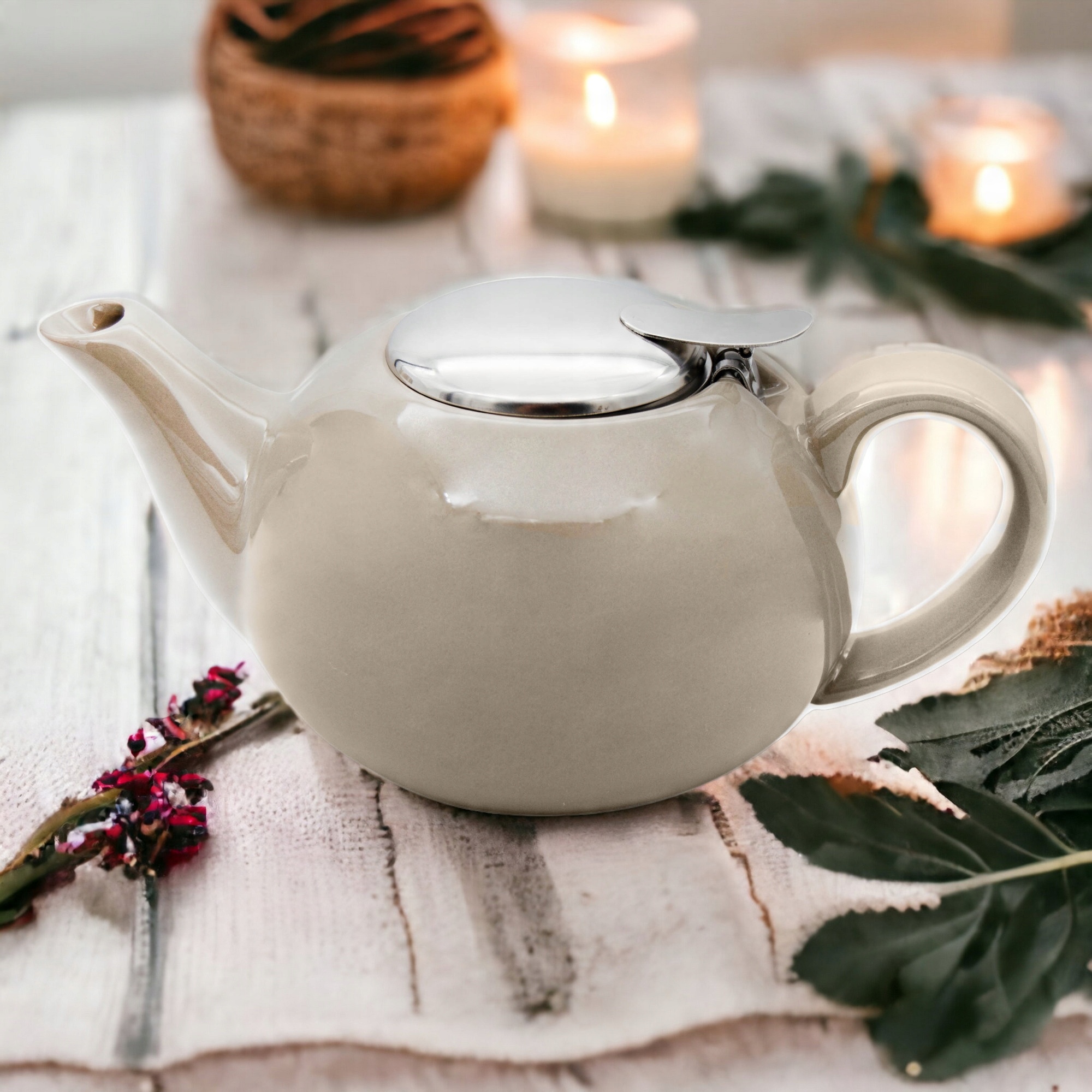 Глечик із заваркою виготовлений звисокоякісної глазурованої кераміки. Повністю безпечний для здоров'я та призначений для контакту з їжею. Ситечко з нержавіючої сталі в комплекті дає змогу отримати природний та надзвичайно сильний аромат заварених чаїв або трав. Ідеально вписується в будь-який тип декору - має цікавий і в той же час класичний дизайн. Корисно в кожному домі та легко підтримувати в чистоті - можна мити в посудомийній машині.
