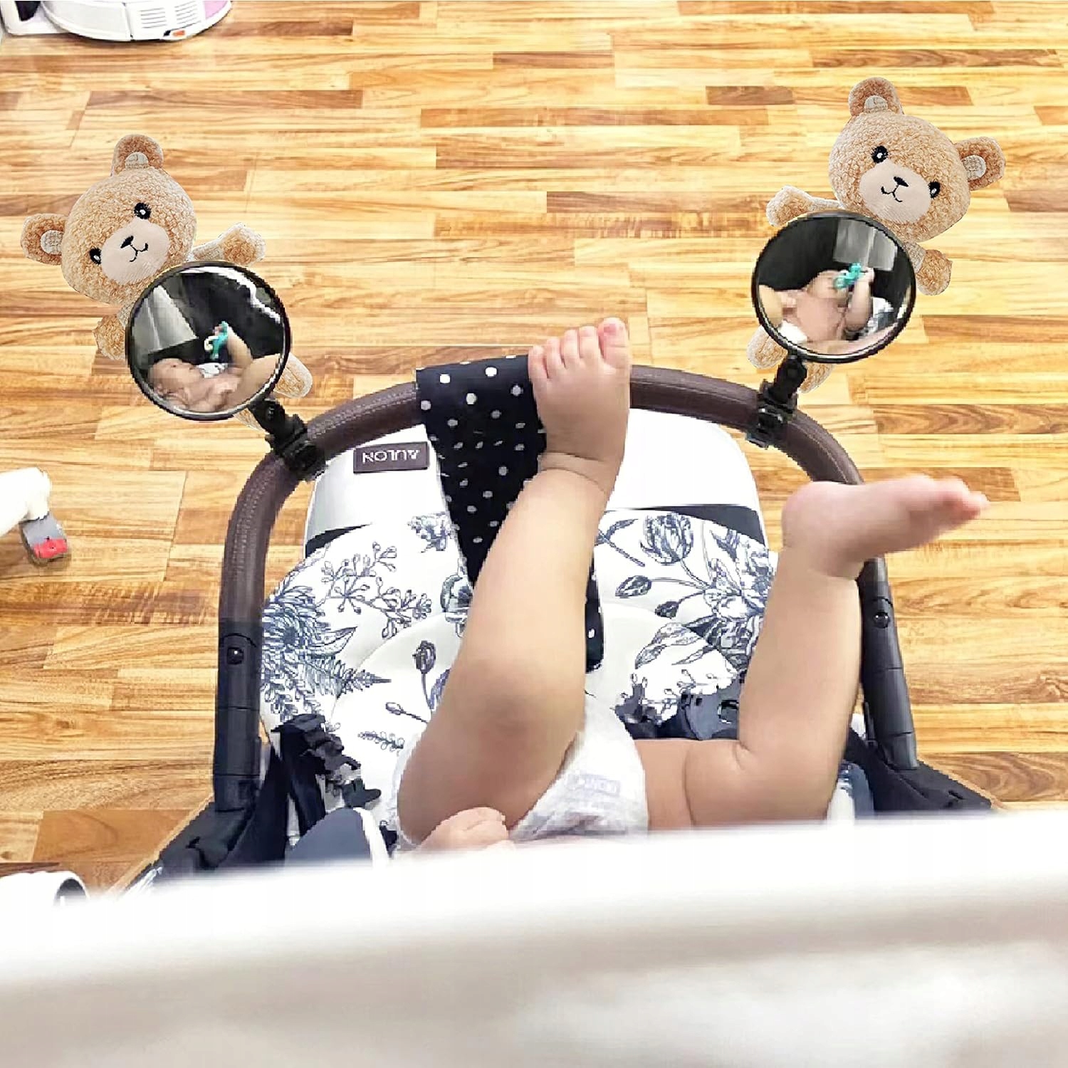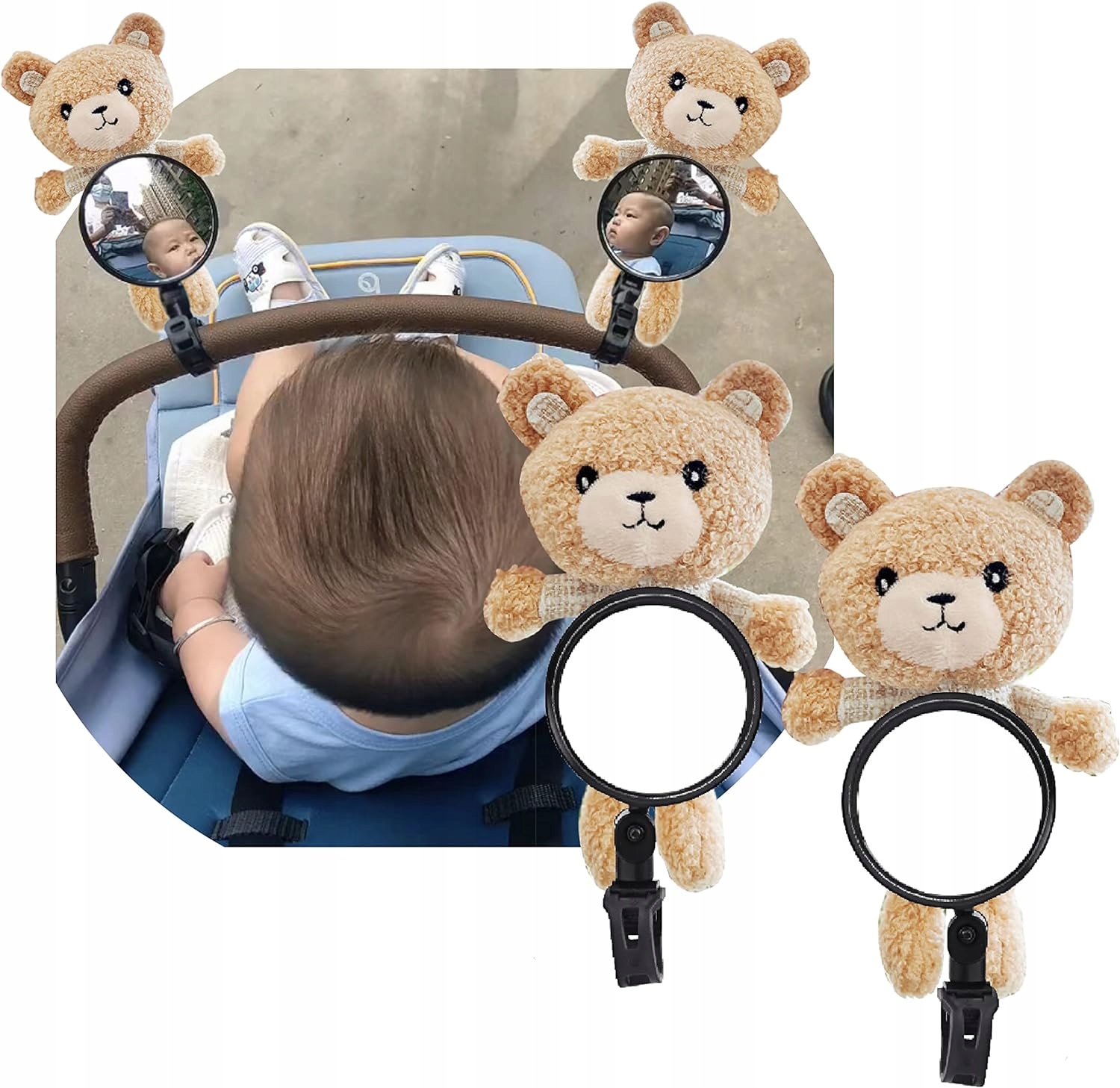 Набір з двох дзеркал для дитячої коляски з ведмедиками. Після встановлення дитина та батько зможуть дивитися один на одного.