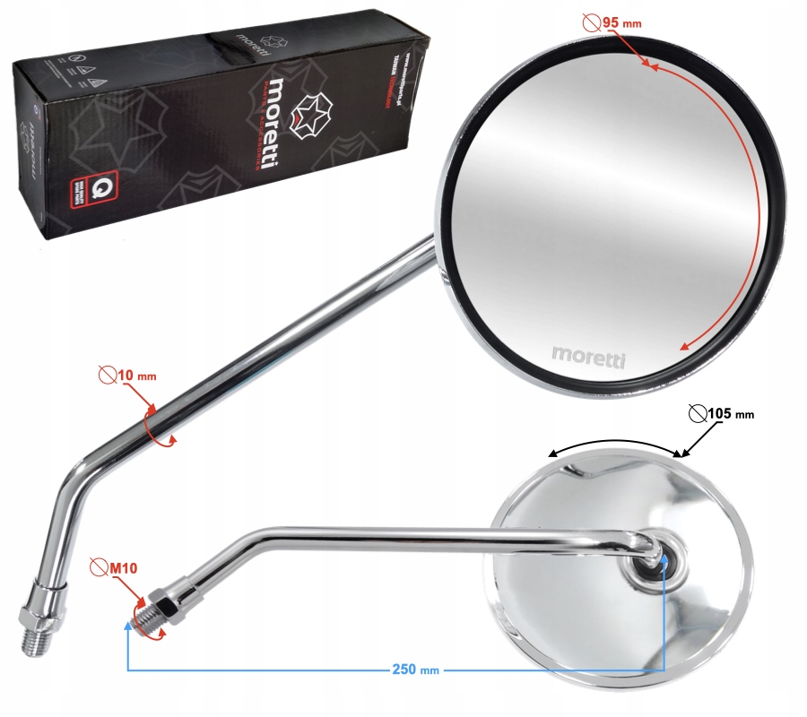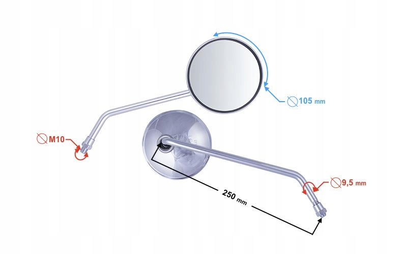 Дзеркала для мотоциклів для велосипедного скутера мотоцикла R+R M10 Chrome