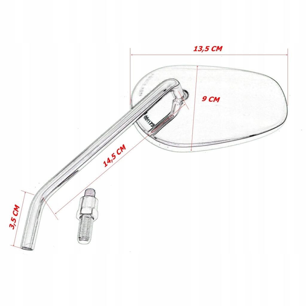 - При виборі дзеркал для вашого мотоцикла враховуйте розміри дзеркал і розмір різьби. На польському ринку додаткове кермо часто встановлюється на певну модель мотоцикла та впроваджується багато модифікацій. Перевірте, який розмір і тип різьблення у вас у тримачах для дзеркал. Візьміть до уваги довжину кронштейна дзеркала від його кріплень, ширину та форму керма та ваше положення на мотоциклі.