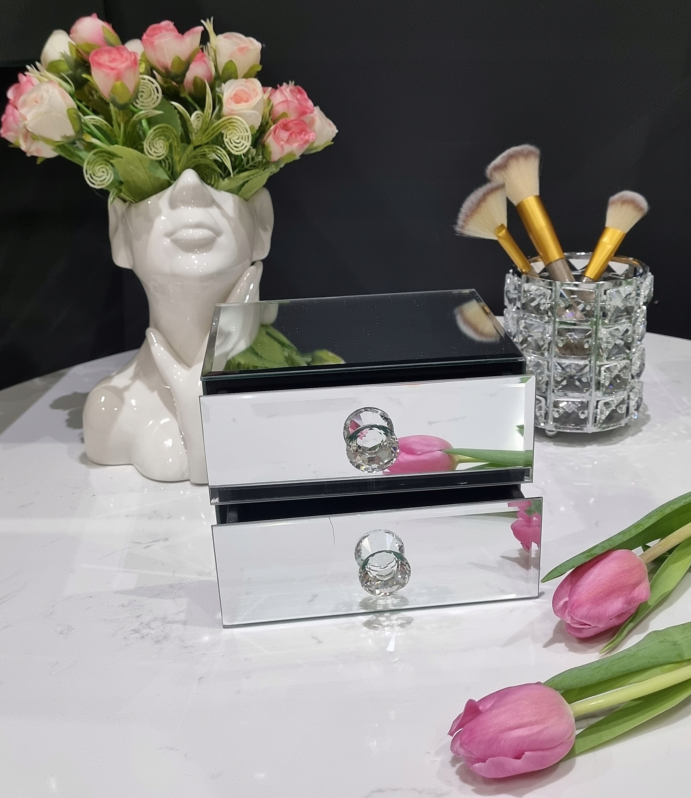 Ідеальна коробка ювелірних виробів або інші дрібнички буде чудовою як прикраса в інтер'єрі в стилі гламуру. Центр коробки - це велюр. CM