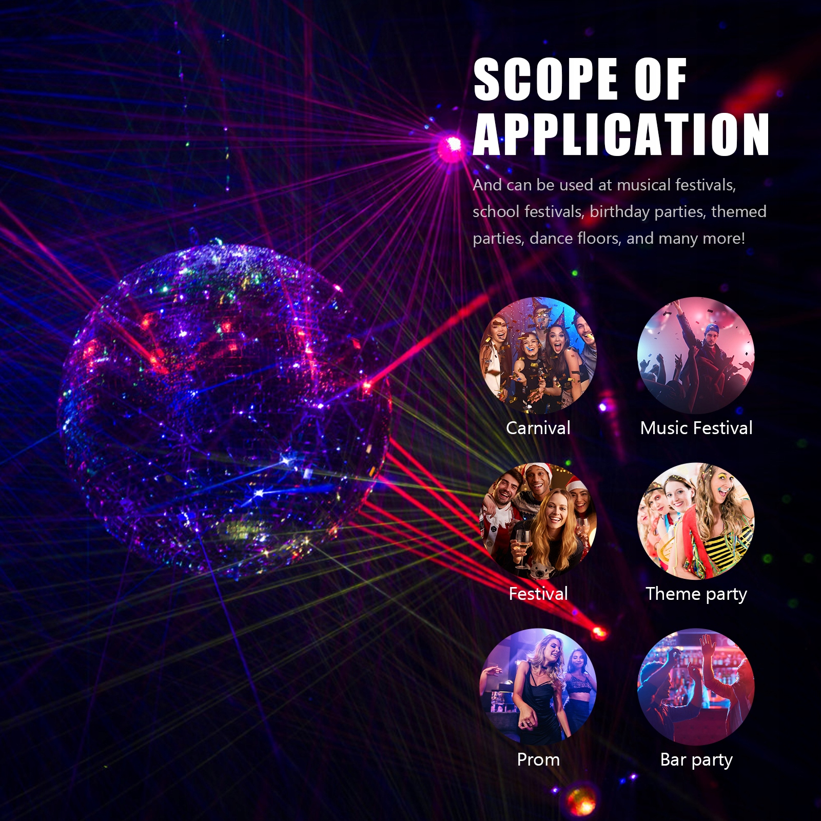 ✅Дзеркальна диско-куля має класичний вигляд. Він має дзеркало, схоже на маленькі плитки, обгорнуті навколо кулі, щоб створити яскраве та прохолодне відображення.