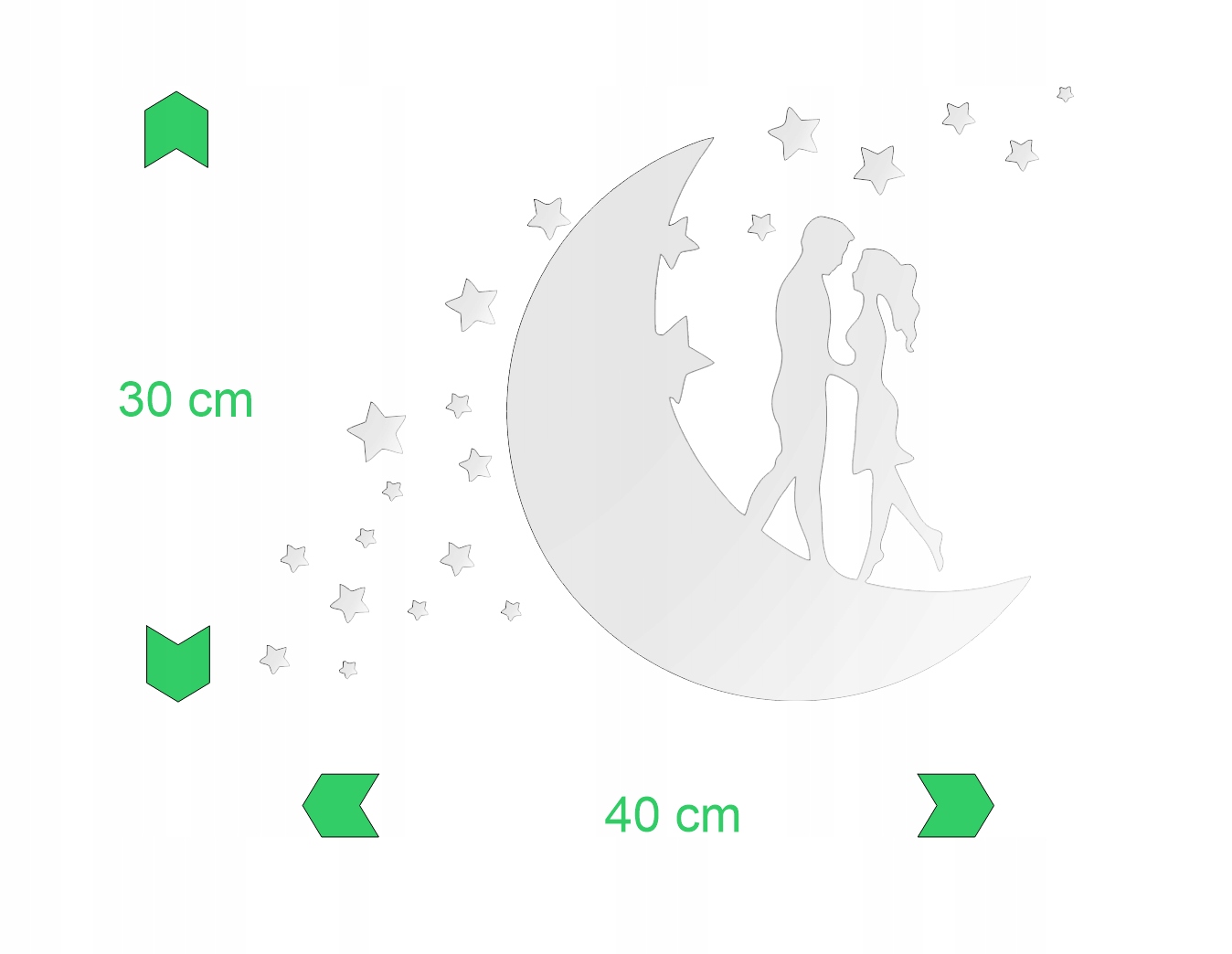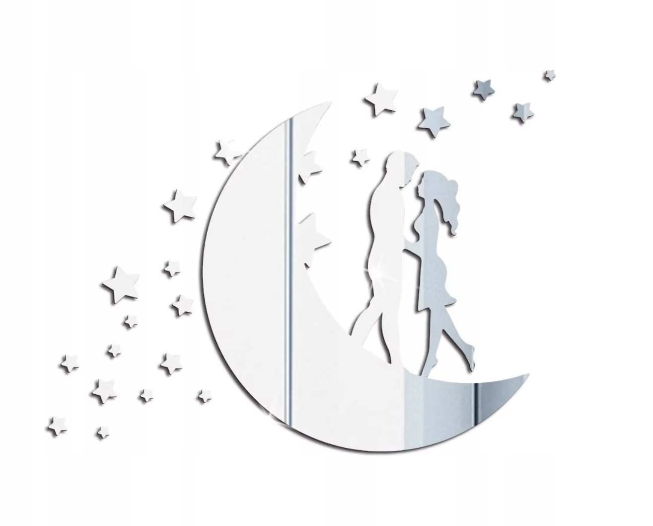 Дайте своєму інтер'єру магічний акцент завдяки нашій дзеркальній прикрасі стіни із зображенням пари, закоханої в місяць, оточеному зірками. Ця елегантна прикраса - це чудовий спосіб додати унікального персонажа як у вітальні, спальні, так і в молодіжній кімнаті.