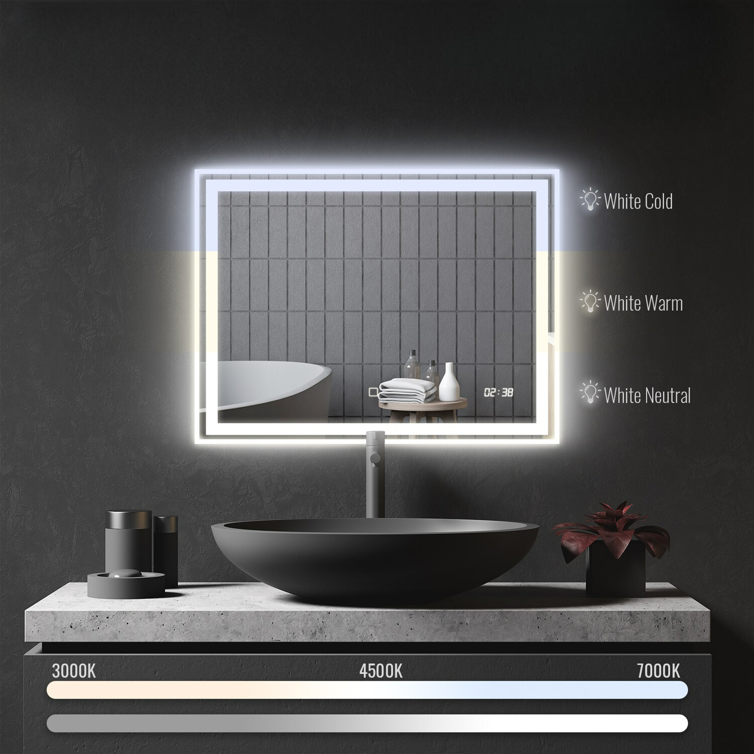 Дайте своїй ванній кімнаті сучасний стиль та приємну атмосферу завдяки нашим тонким, освітленим дзеркалам німецької марки Aquamarin®. Ці дзеркала для ванної кімнати зі світлом оснащені функцією проти туману. Дзеркала, що керуються дотиком, випромінюють спеціальне освітлення середовища, яке, залежно від настрою, можна відрегулювати від теплого, нейтрального та холодного.
