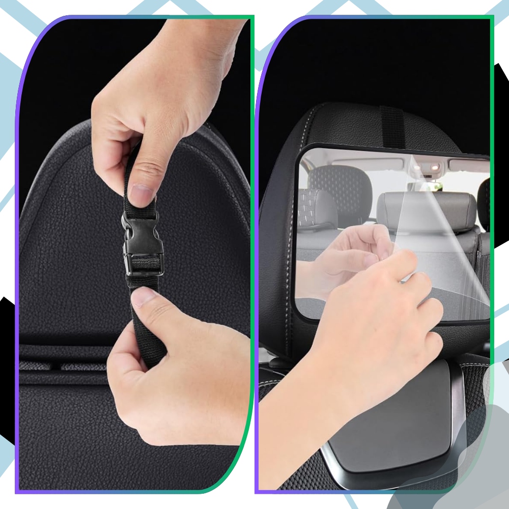 ✅ Встановлення відбувається швидко і інтуїтивно зрозуміло - просто використовуйте регульований ремінь, щоб надійно прикріпити дзеркало до підголівника заднього сидіння. Завдяки міцному кріпленню він залишається на місці навіть під час динамічної їзди або на нерівних дорогах.