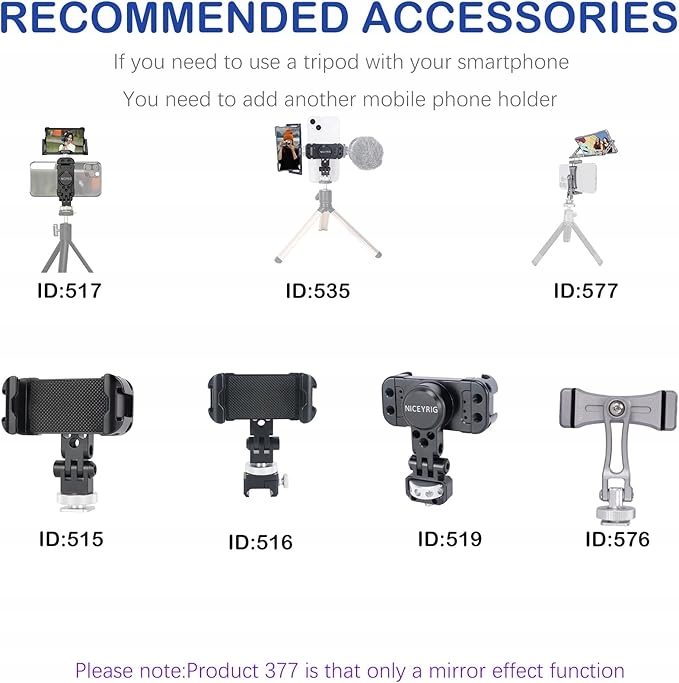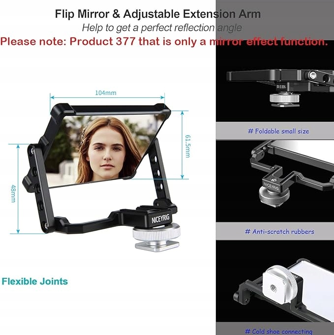 - Дзеркало для селфі має різьбові отвори 1/10,2 см-20 для кріплення аксесуарів, таких як мікрофон або відеосвітло.