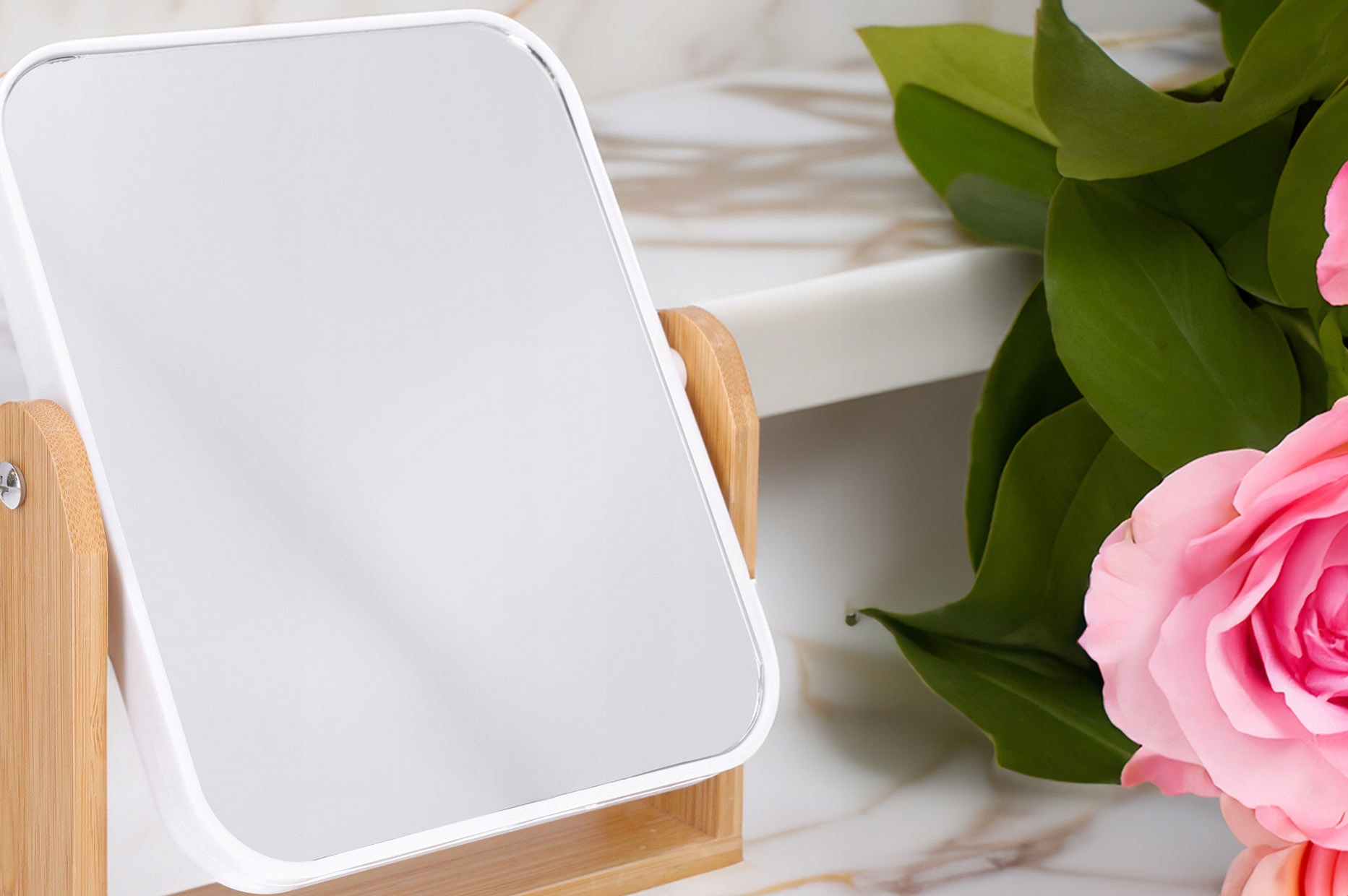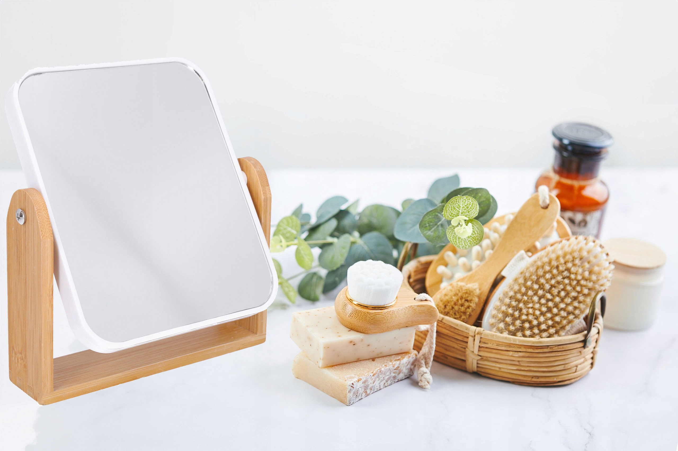 ✅ Стиль - ніжна біла рама та підставка з бамбука надають цьому дзеркалу елегантний мінімалістичний вигляд, який пасує до будь-якого інтер’єру.