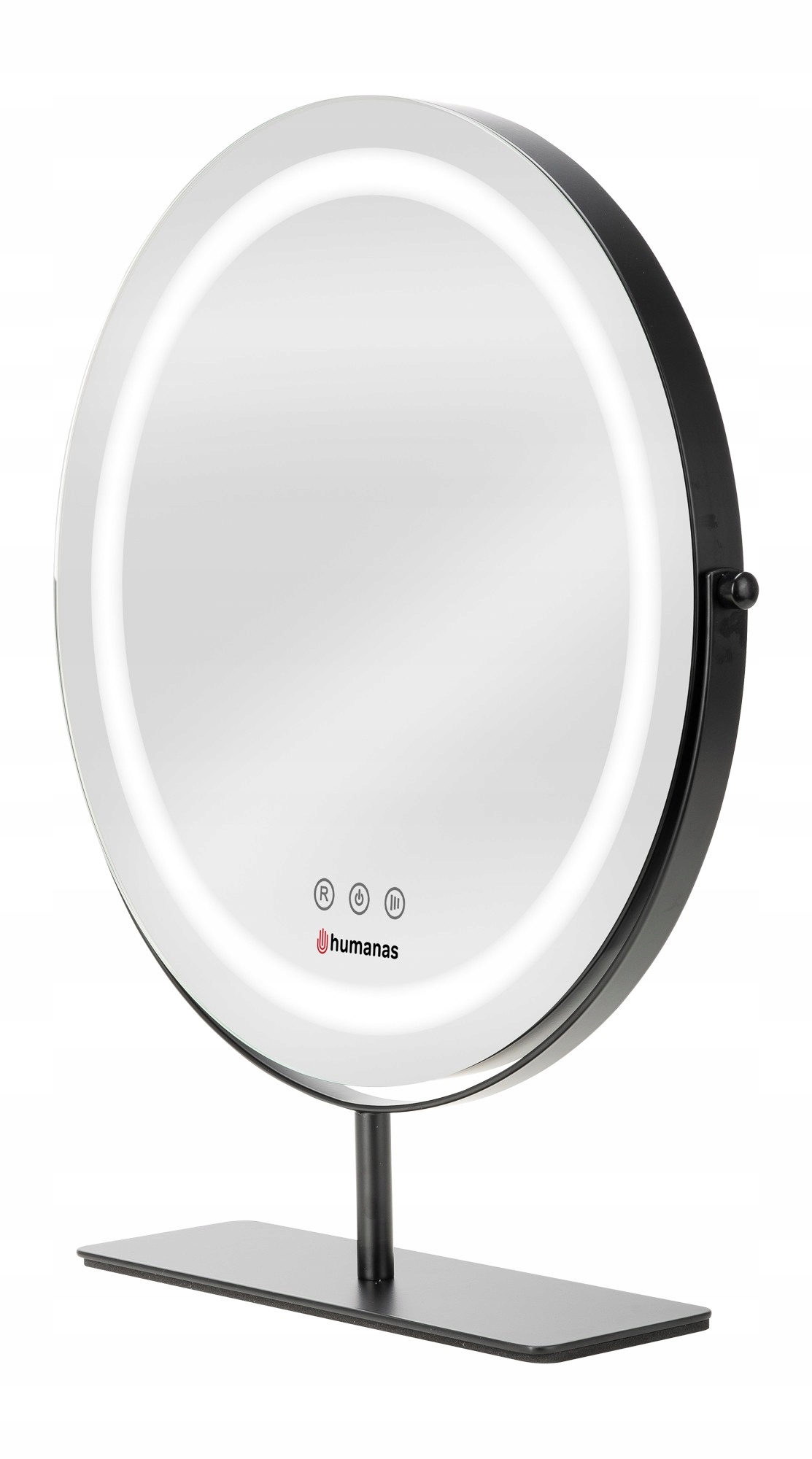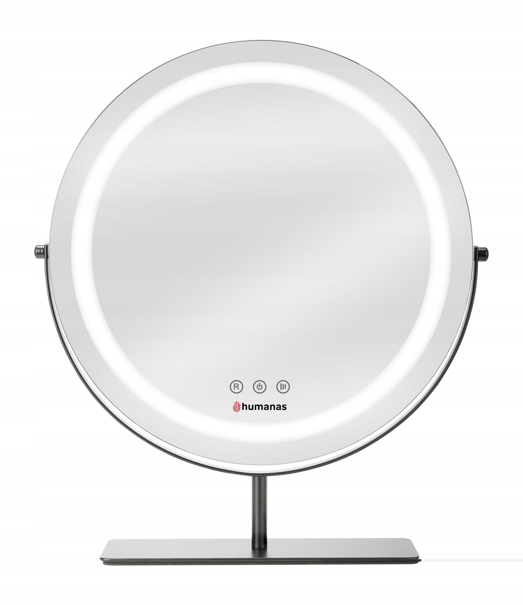 Дзеркало Humanas HS-HM Scarlet допоможе створити ідеальний макіяж практично в будь-яких умовах. Світлодіодна панель навколо скла забезпечить рівномірне освітлення обличчя, сприяючи точному нанесенню косметики. Криві лінії, нерівномірно розподілена пудра або неідеальний контур очей і губ більше не будуть проблемою. Можливість регулювати положення дзеркала в діапазоні 360º - ще одна перевага, яка полегшить нанесення макіяжу. Залежно від ваших потреб ви можете встановити бажаний рівень підсвічування і вибрати один з 3 варіантів колірної температури світла. Чорне металеве покриття ідеально підходить як для дому, так і для візажних студій.
