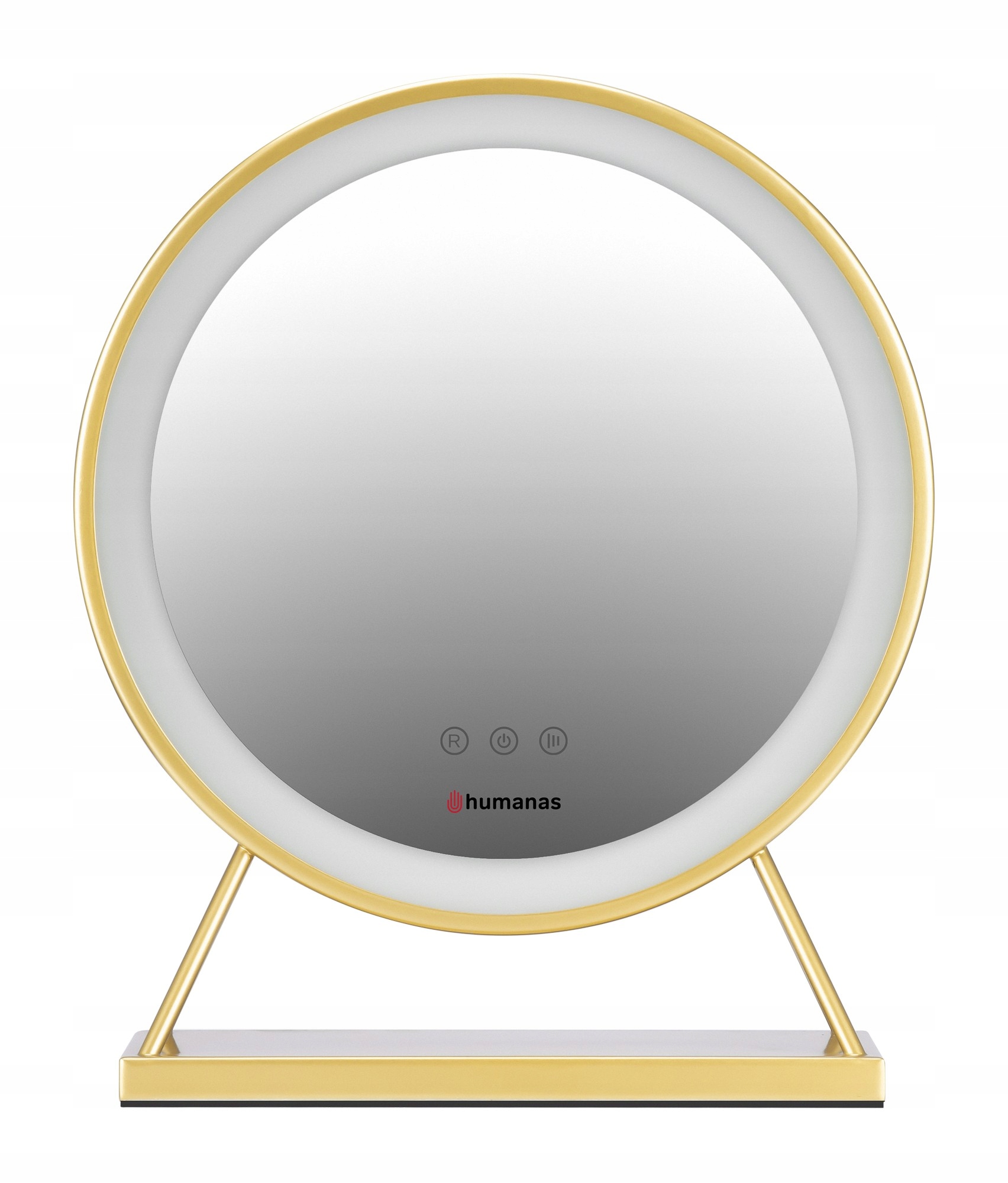 Дзеркало Humanas HS-HM04 зі світлодіодним підсвічуванням - це не тільки чудовий інструмент для роботи з макіяжем, а й гарна прикраса, яка впишеться в будь-який інтер'єр. Вони оснащені сенсорною панеллю, що дозволяє швидко і зручно регулювати потужність. Щоб ідеально підібрати освітлення до навколишнього середовища, часу доби або ваших незвичайних ідей макіяжу, є також 3 рівні колірної температури - теплий, холодний і нейтральний. Золотисте металеве покриття ідеально підходить як вдома, так і в студії макіяжу, а світлодіодна панель із молочного матеріалу забезпечує м’яке світло, яке оптимально висвітлює обличчя.