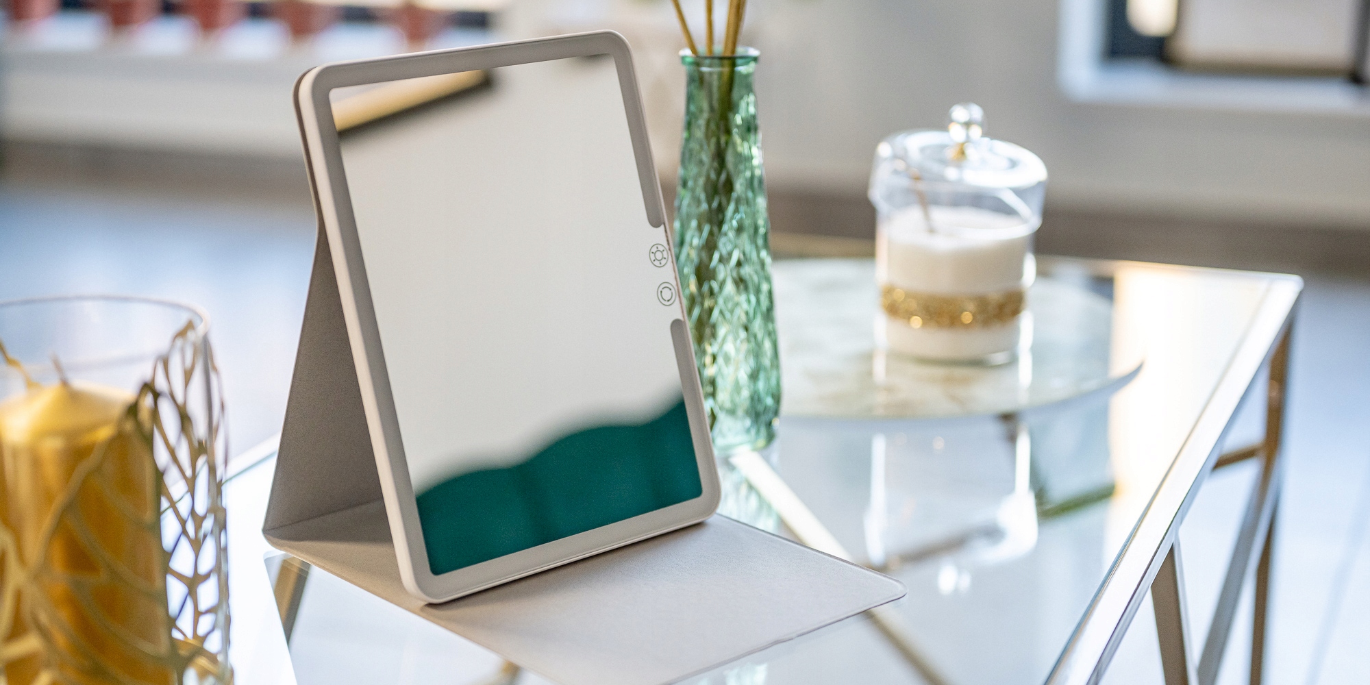 Дзеркало для макіяжу Humanas HS-ML02 оснащено чохлом, інтегрованим із корпусом, виготовленим із міцного матеріалу, який легко миється. Одного протирання досить, щоб видалити будь-які плями, сліди макіяжу або пил. Завдяки такому футляру дзеркало завжди буде виглядати як нове, зберігаючи свій елегантний і стильний зовнішній вигляд. Складна підставка також є відмінним захистом. Закритий футляр ефективно захистить дзеркало під час подорожей.