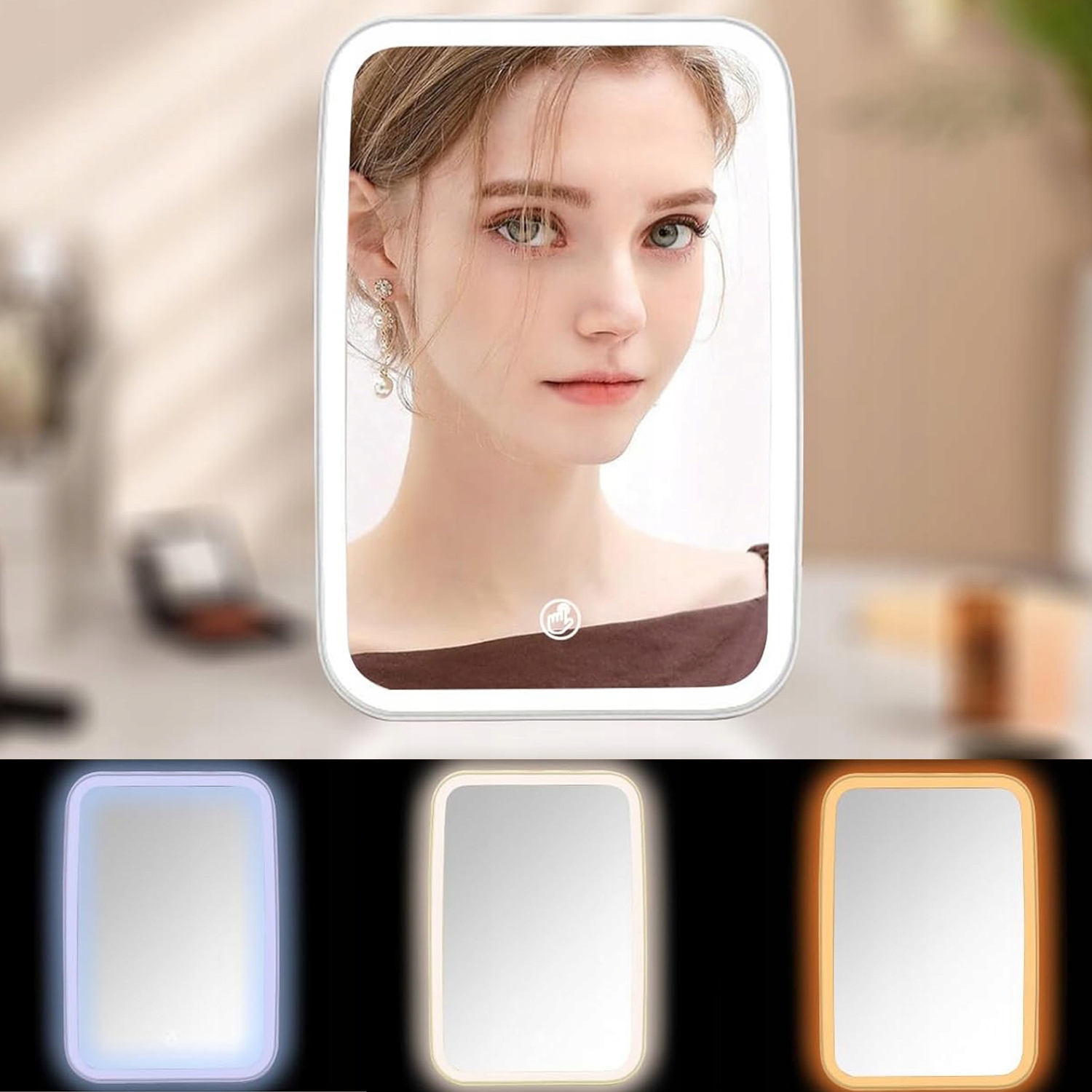 Це дзеркало для макіяжу зі світлодіодним підсвічуванням забезпечує тепле та холодне біле світло. Легко перемикайте кольори між теплим і білим світлом.