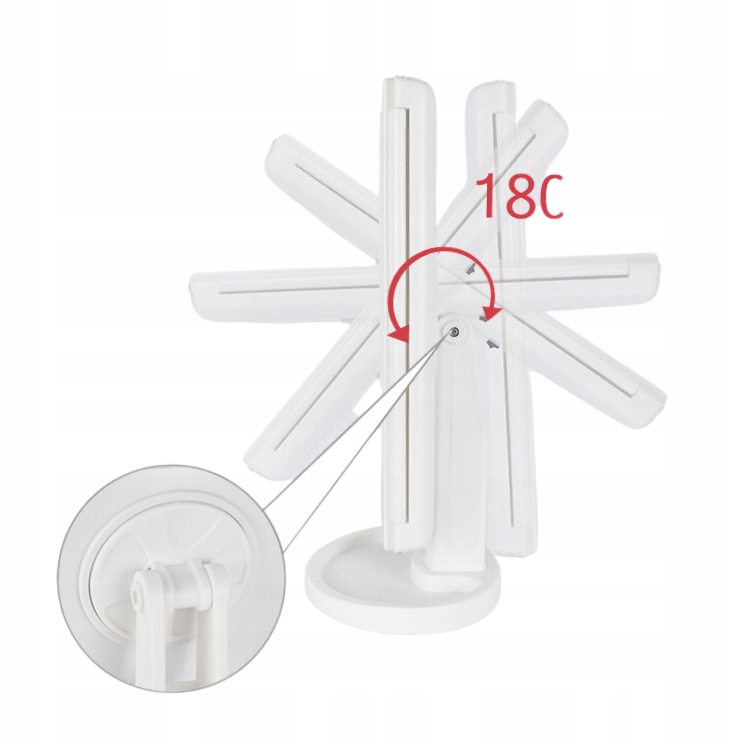 - Косметичне дзеркало з регульованим світлодіодним підсвічуванням, функцією складання та можливістю увімкнути освітлення дотиком, також пропонує опцію збільшення та можливість повернути його на 180 градусів.